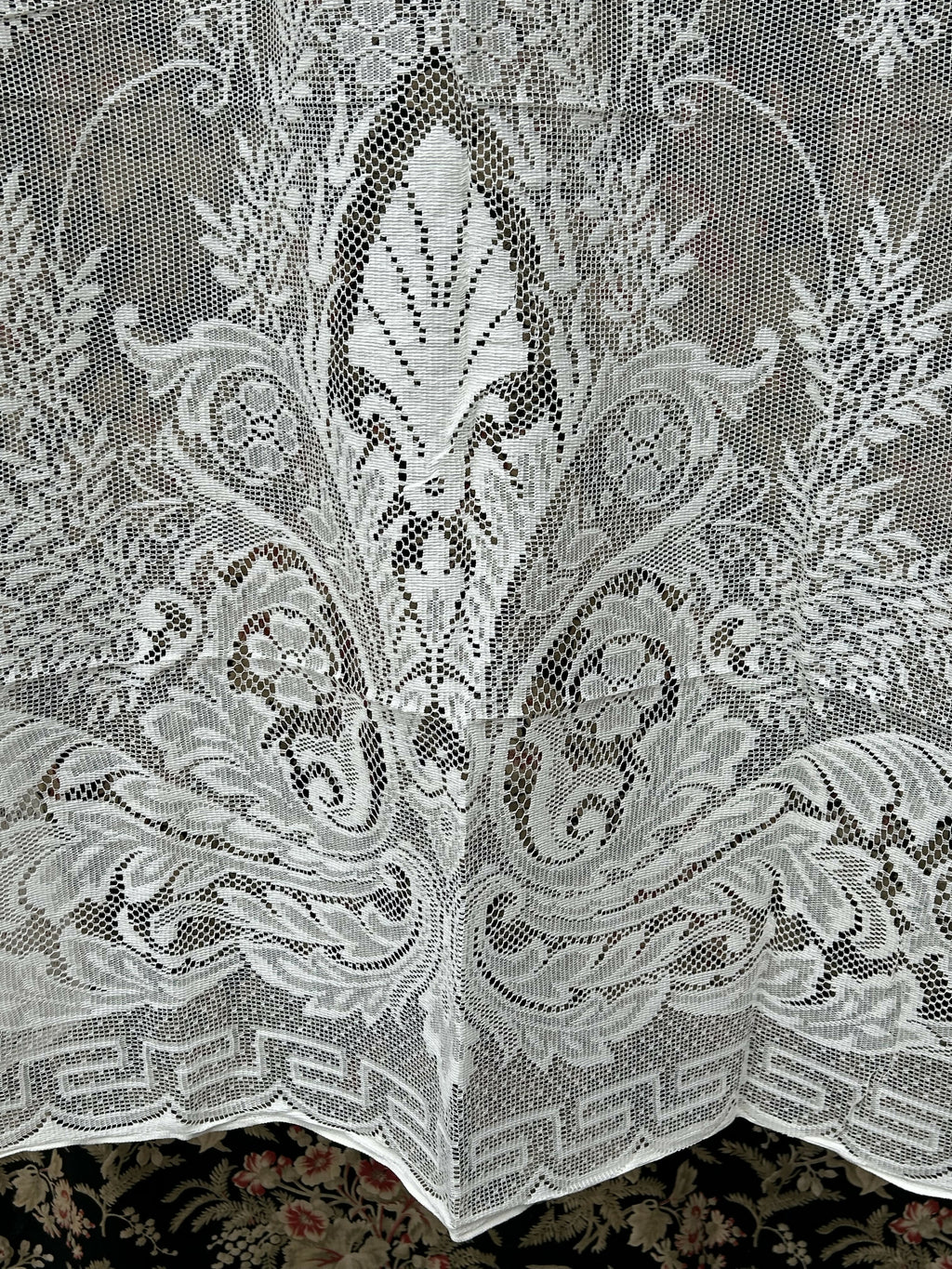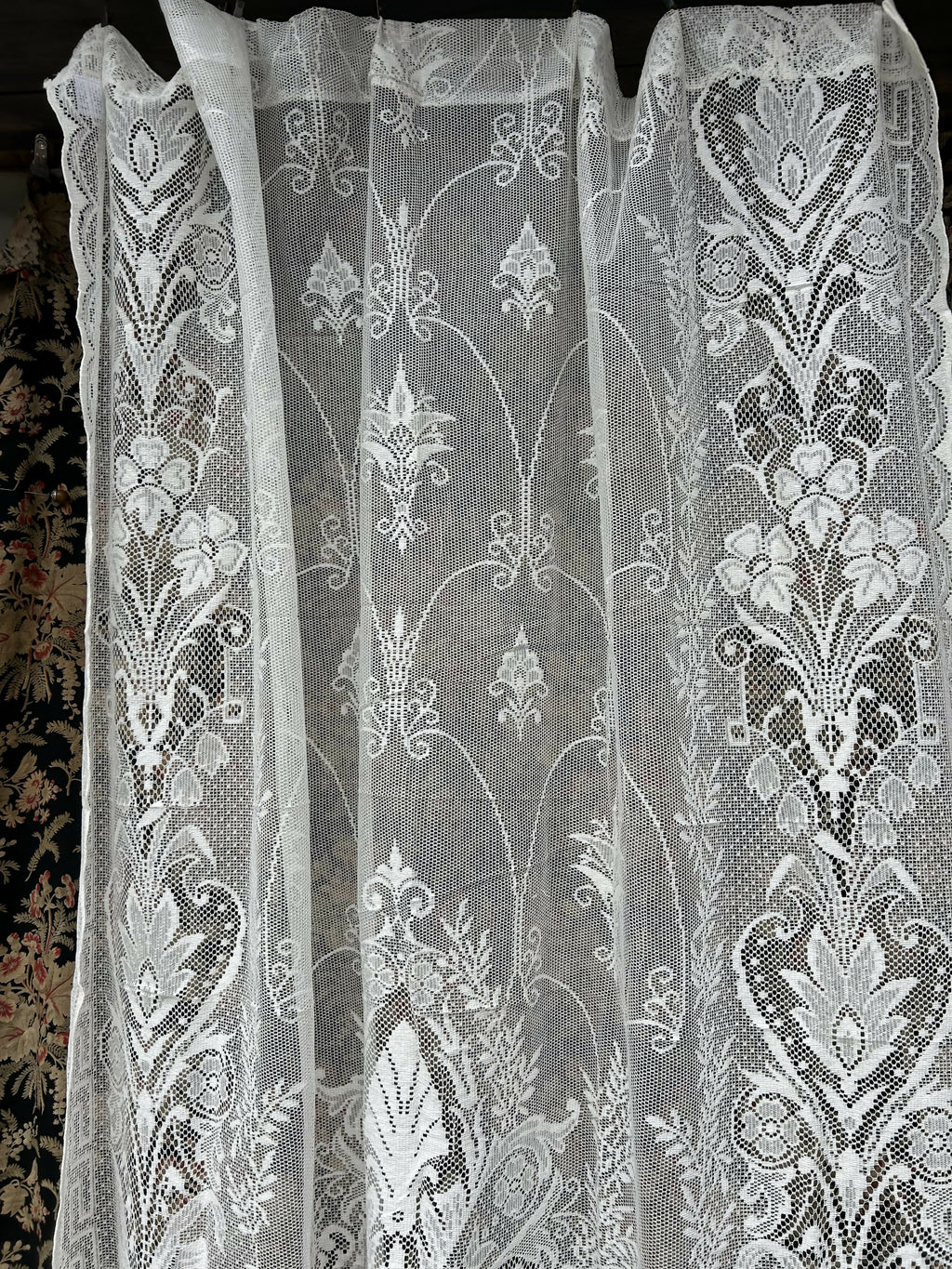 A very beautiful floral design typical of the Victorian period with trademark Neo grec border and flowers. The design dates to circa 1900, made on the original Nottingham lace looms