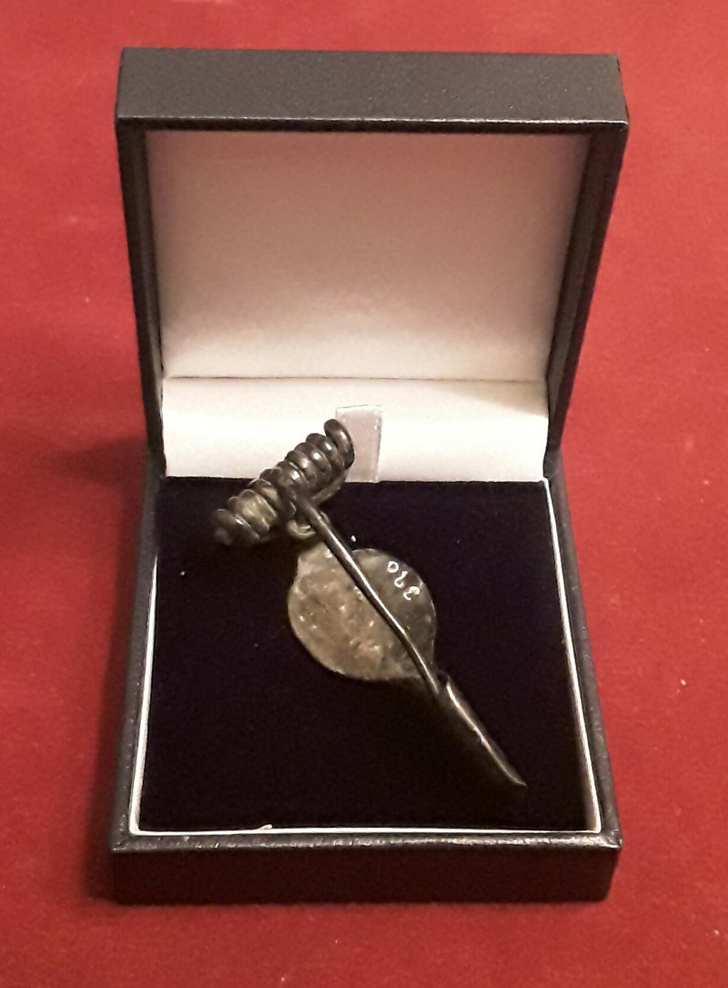 Old collection number to reverse of brooch.