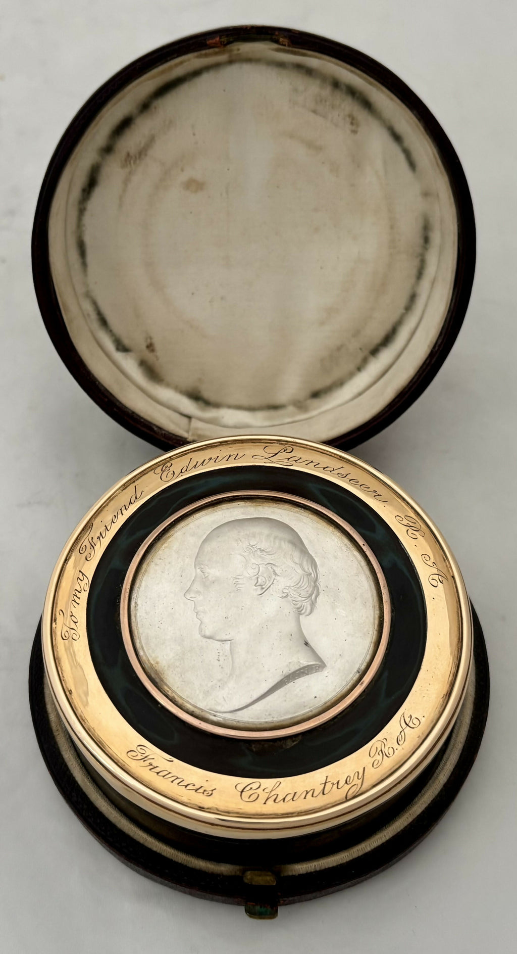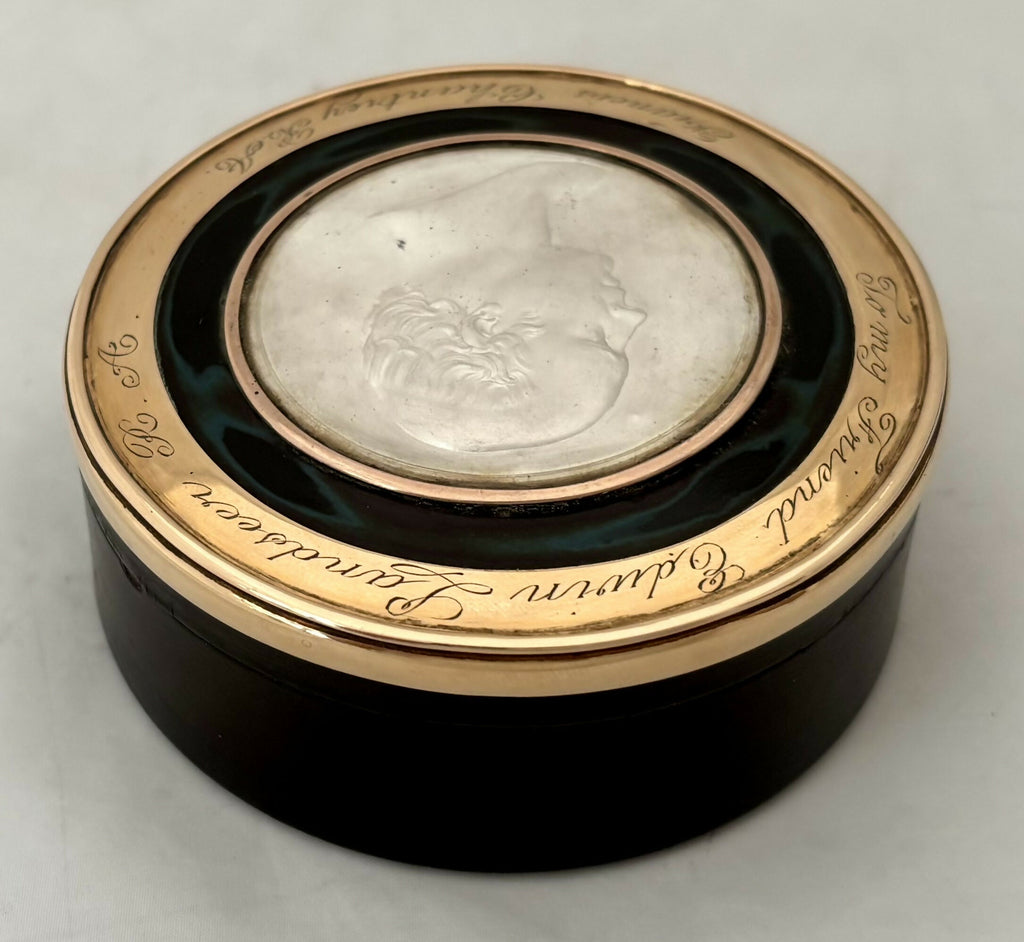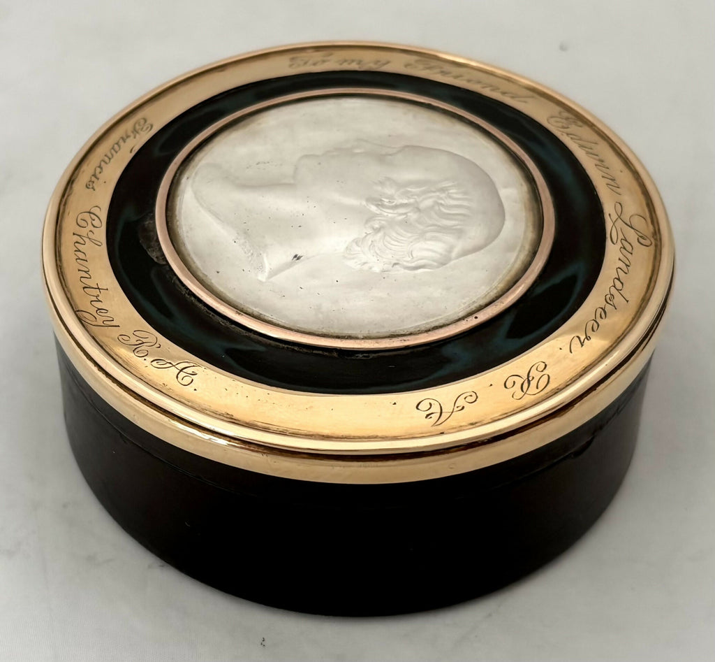 Sir Francis Chantrey RA & Sir Edwin Landseer RA Gold Mounted Portrait Snuff Box. After William Bain.