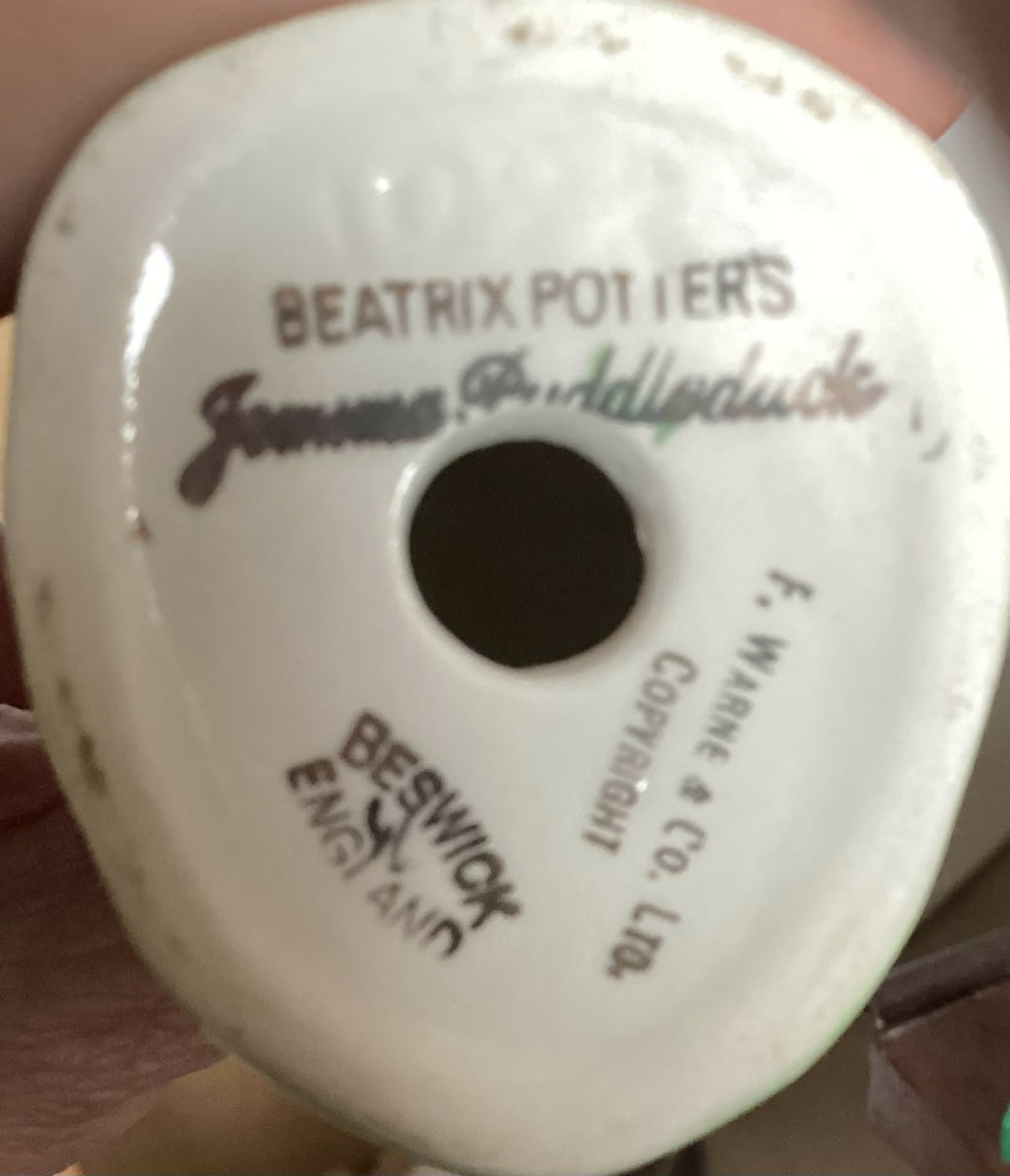 Beswick Beatrix Potter figurine Beswick Jemima figurine Beswick Beatrix Potter Gold Backstamp BP2