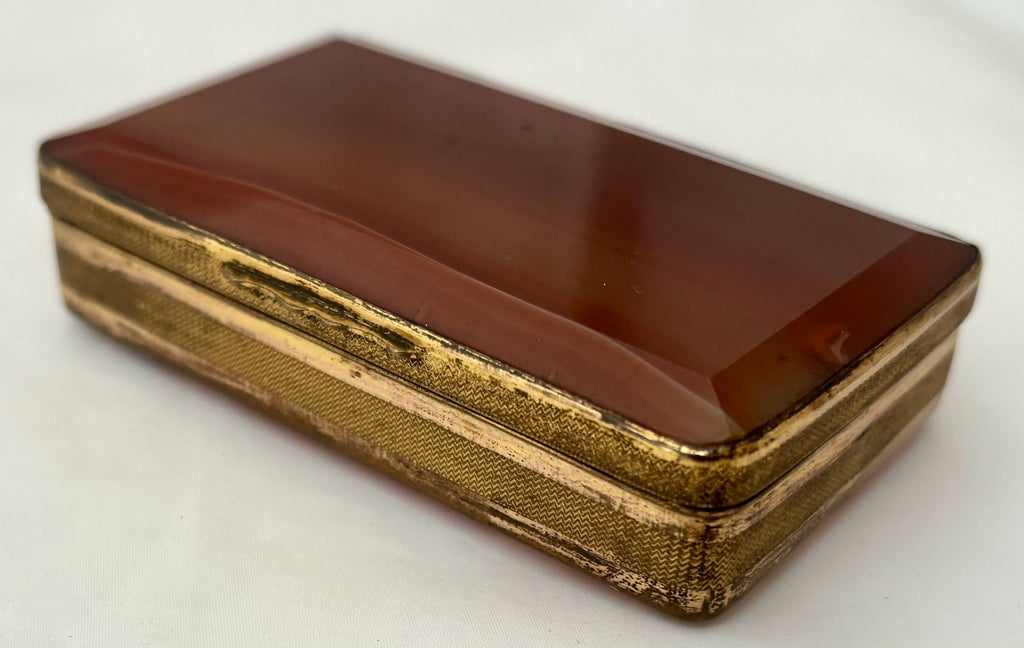 Mid 19th Century Gilt Metal & Agate Snuff Box.