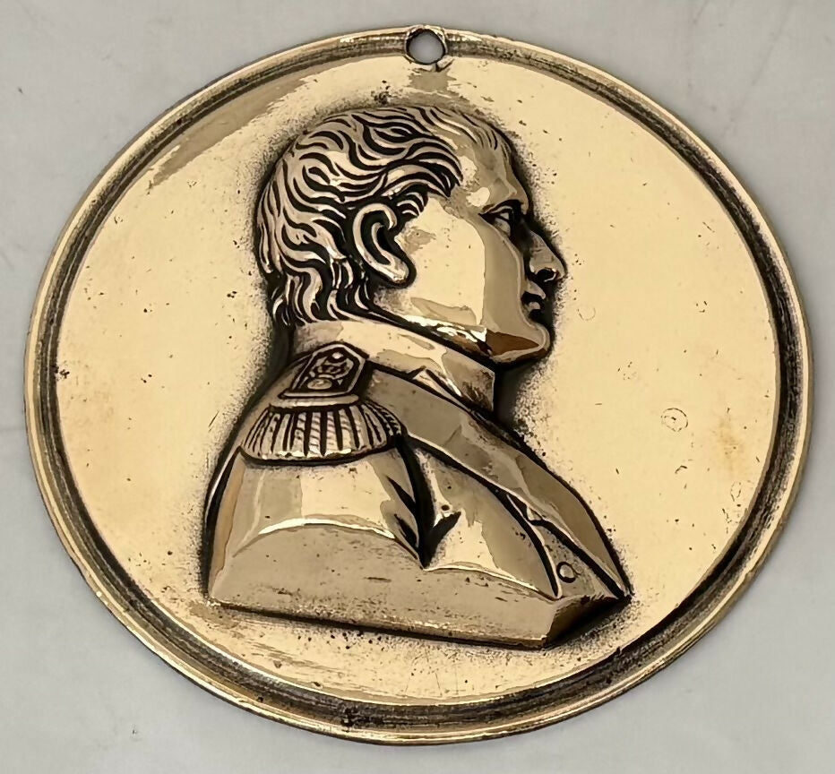Napoleon Bonaparte Gilt Metal Portrait Profile Bust Roundel. Dates to late 19th, or early 20th centuries.