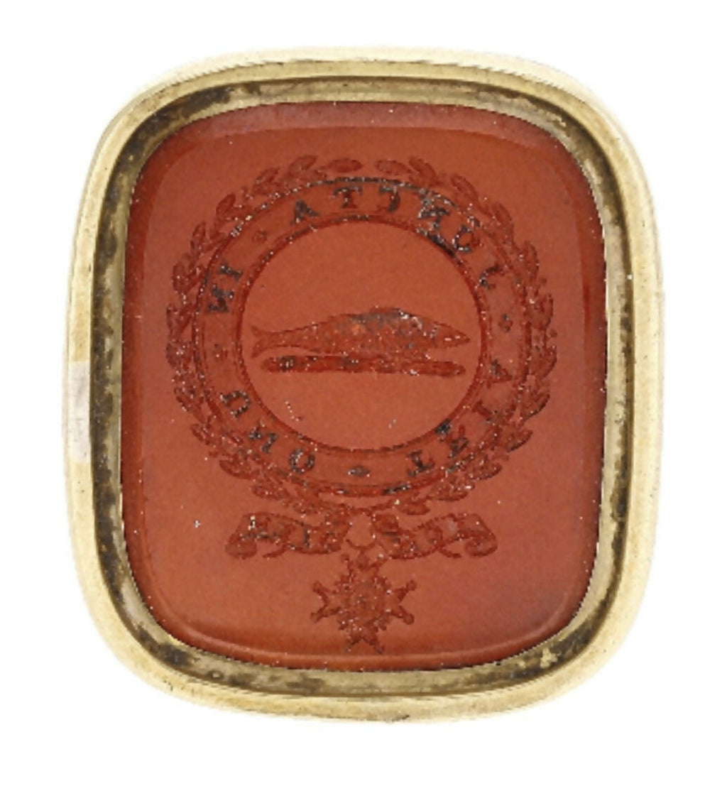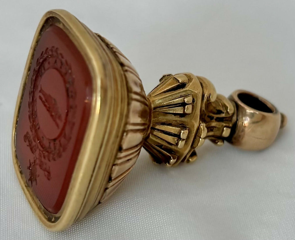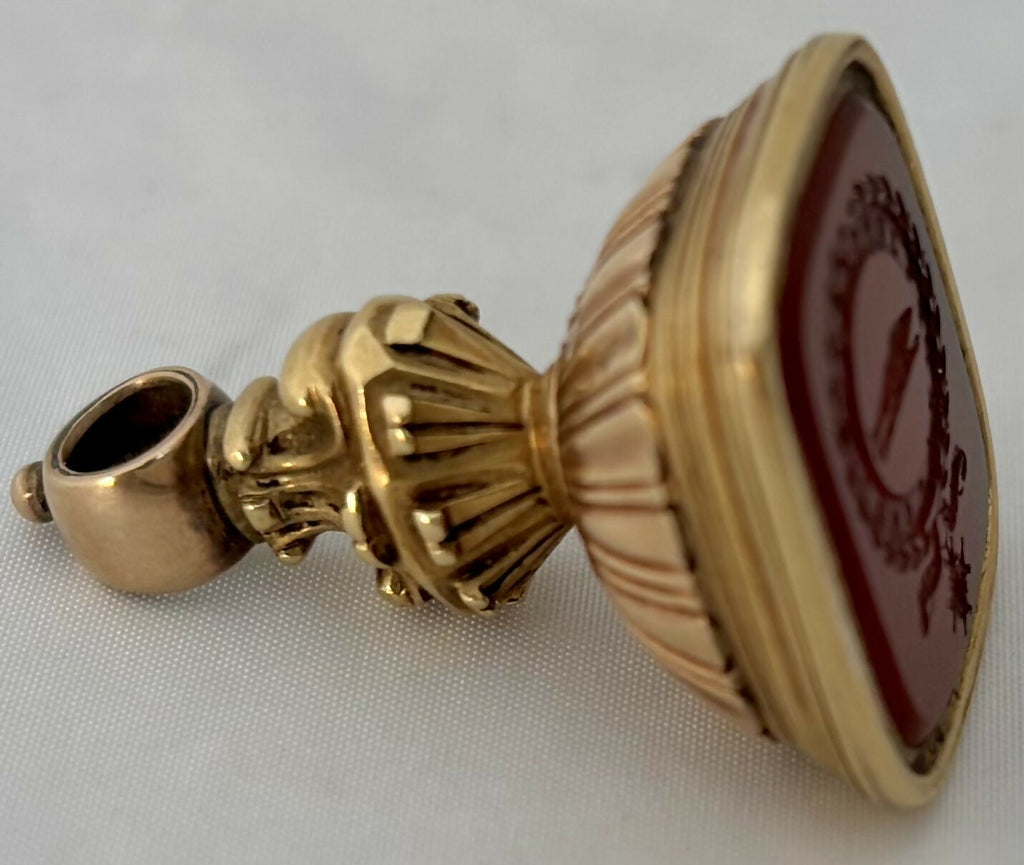 Vice-Admiral Sir Charles Vinicombe Penrose, KCB GCMG (1759 - 1830) Carnelian Inset Unmarked Gold Fob Seal. A Royal Navy Officer who Commanded Vessels During the Fourth Anglo Dutch, French Revolutionary and Napoleonic Wars.