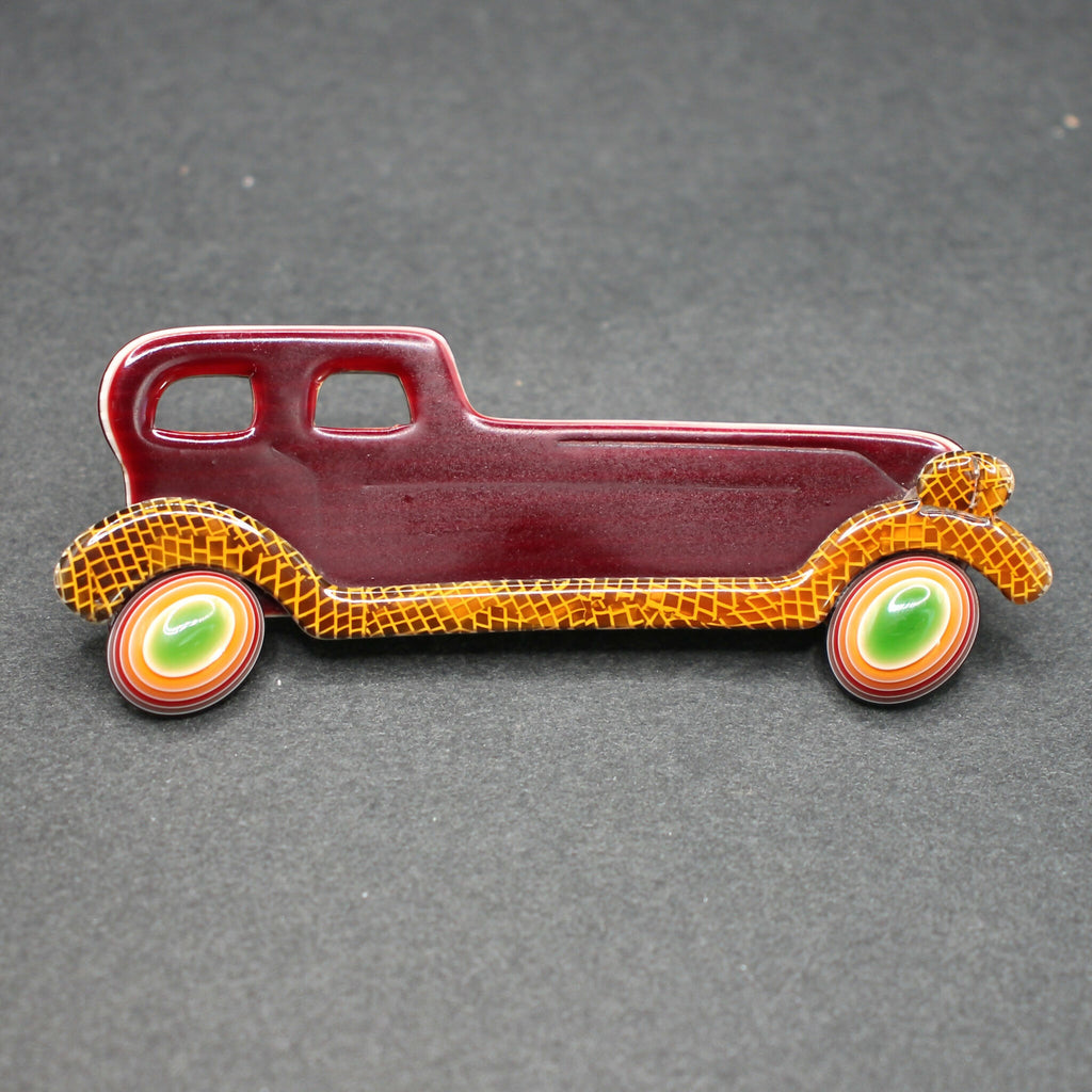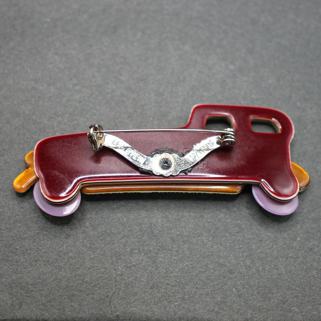 Lea Stein maroon-tan limousine brooch