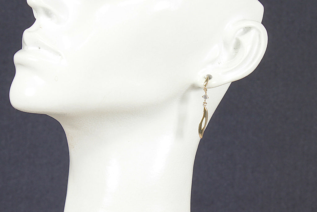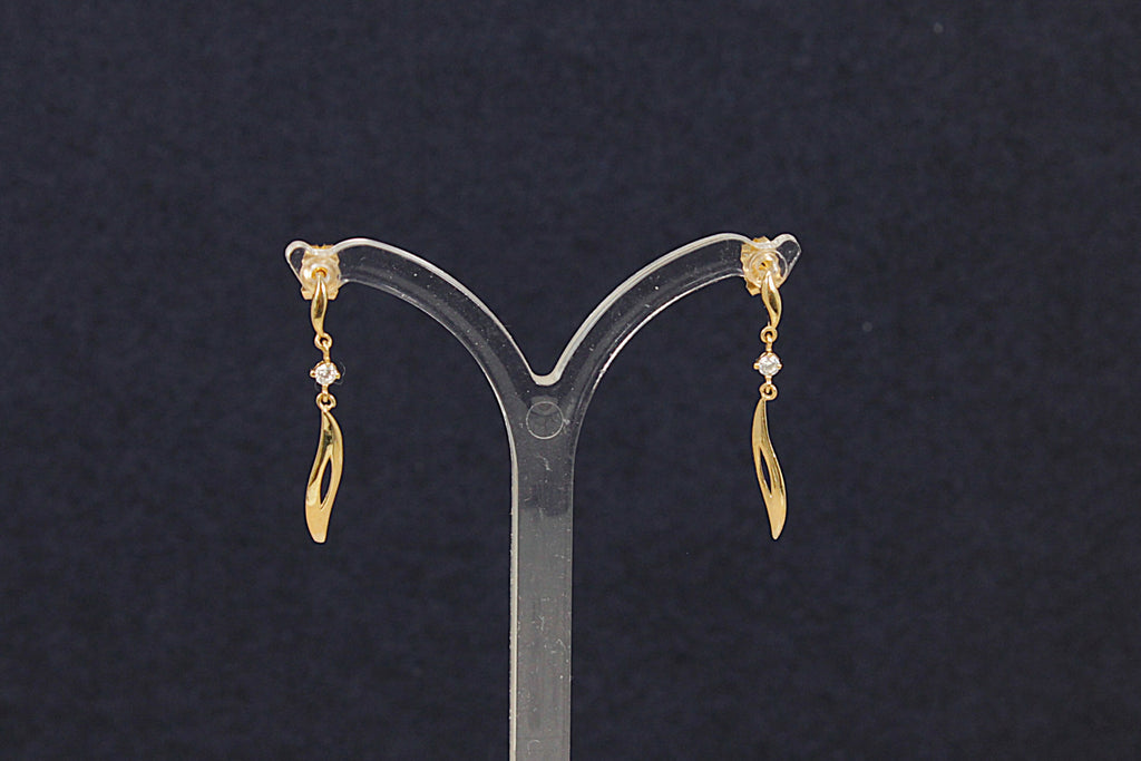 These beautiful 9ct Gold earrings showcase a delicate design featuring two intricately crafted leaf shapes. Each leaf is separated by a sparkling white crystal, adding a touch of elegance and shimmer to the piece.