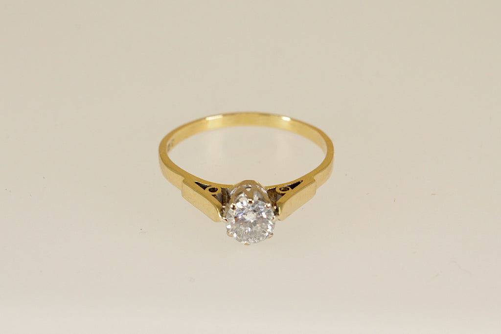 This stunning 18ct Gold Diamond solitaire ring is a superb example of classic fine jewellery. The ring features a round brilliant-cut diamond weighing approximately 0.65 carats, beautifully claw set with eight claws in a traditional crown setting that maximises light and brilliance.