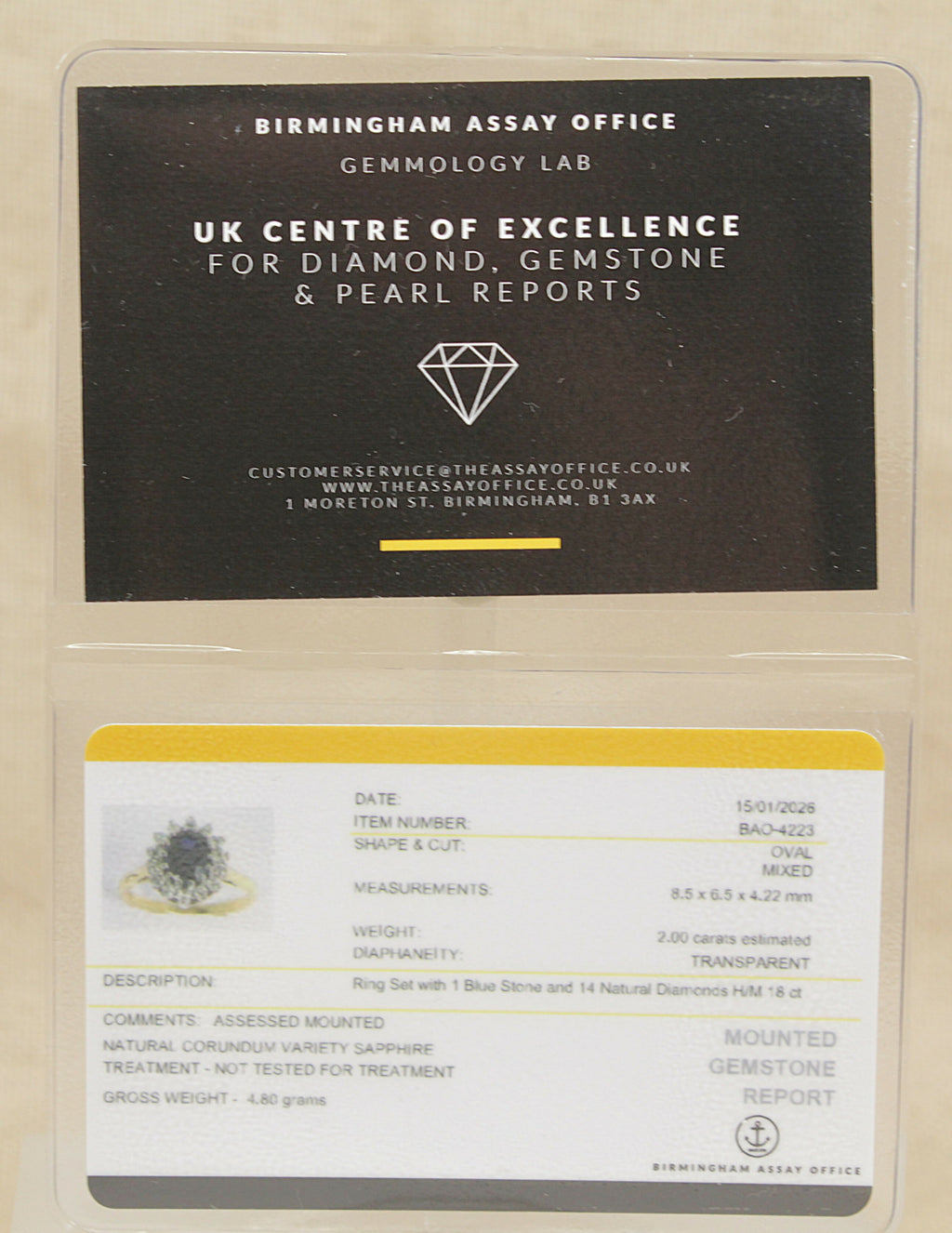 18ct Gold Sapphire & Diamond ‘Diana’ Ring, Certified