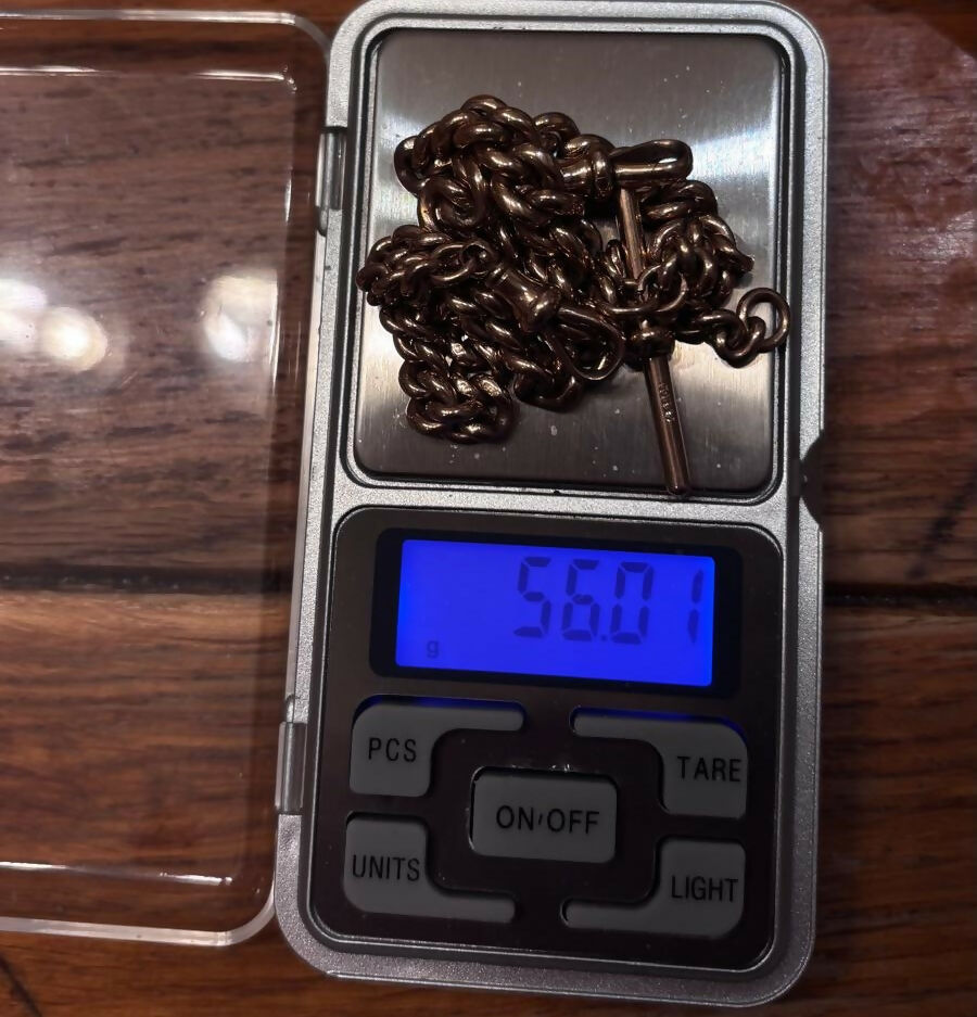 In between the 2 albert chains is a drop chain that was used to attach a small fob or seal.