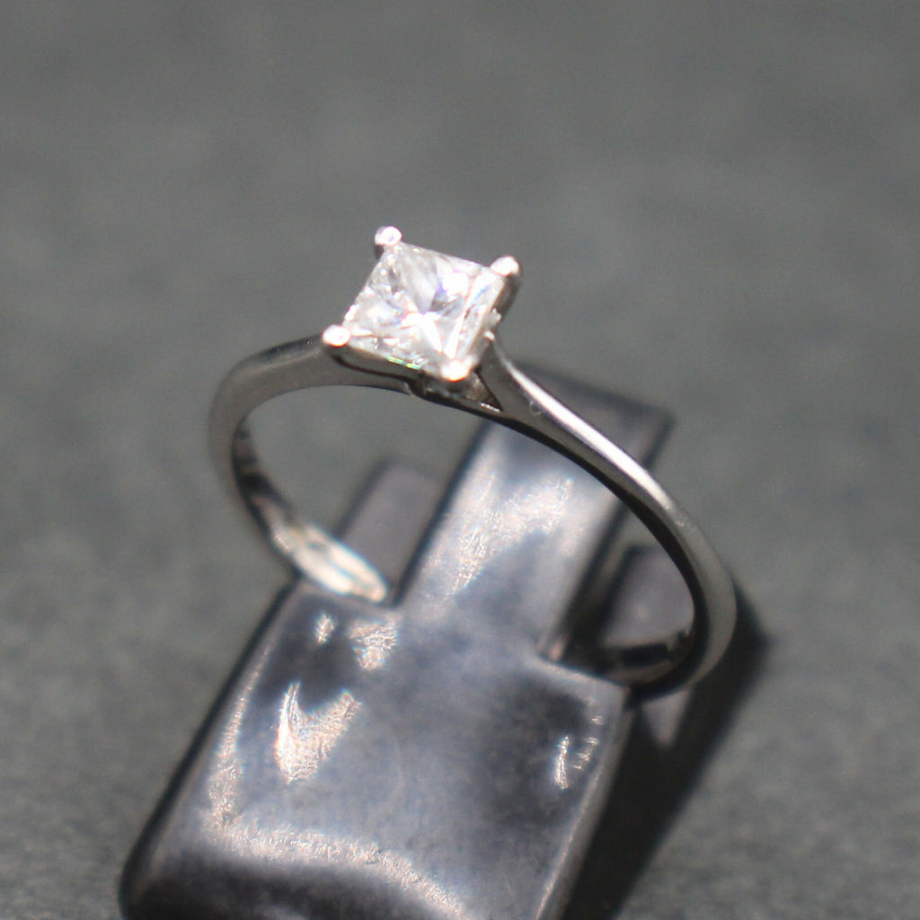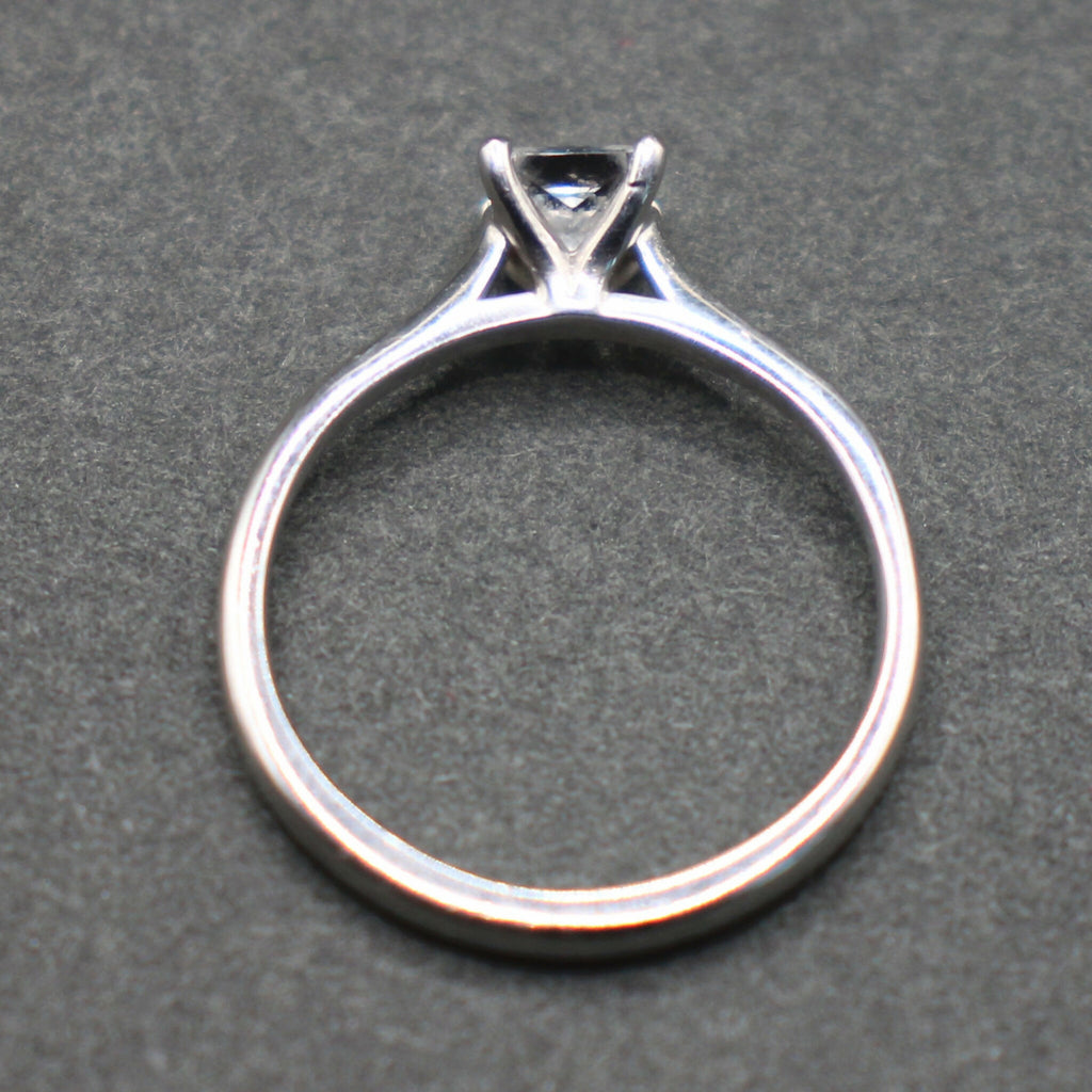 This Platinum ring is set with a princess cut diamond of approximately 0.25carat – it measures approximately 4x4mm.