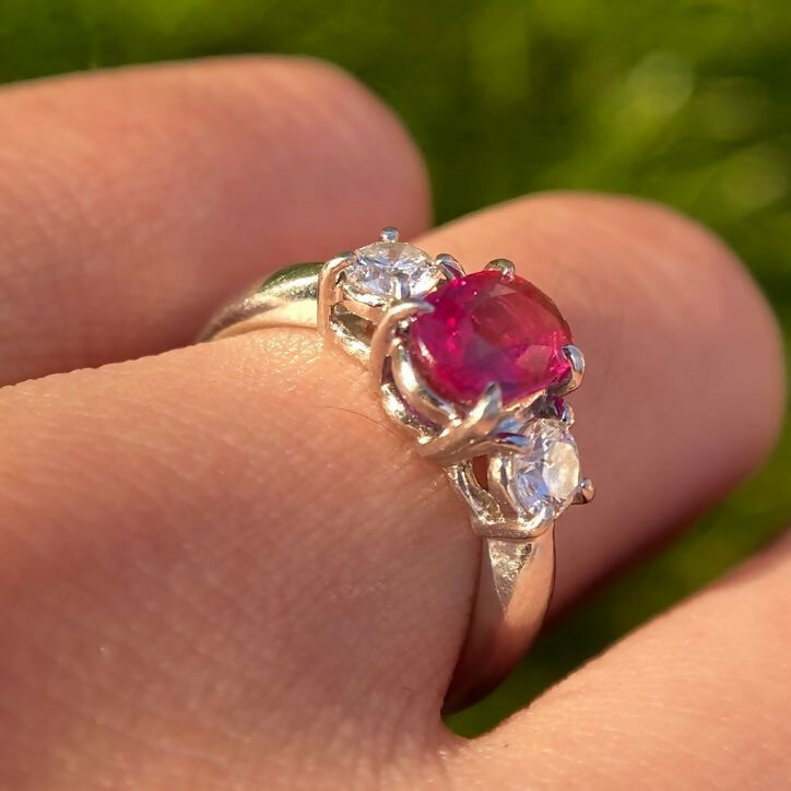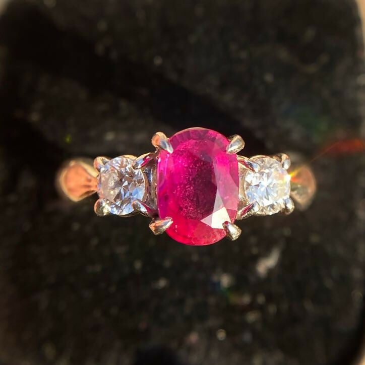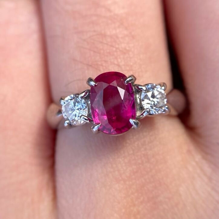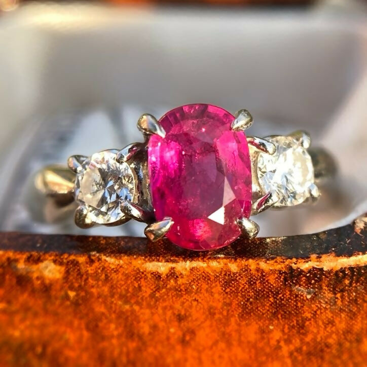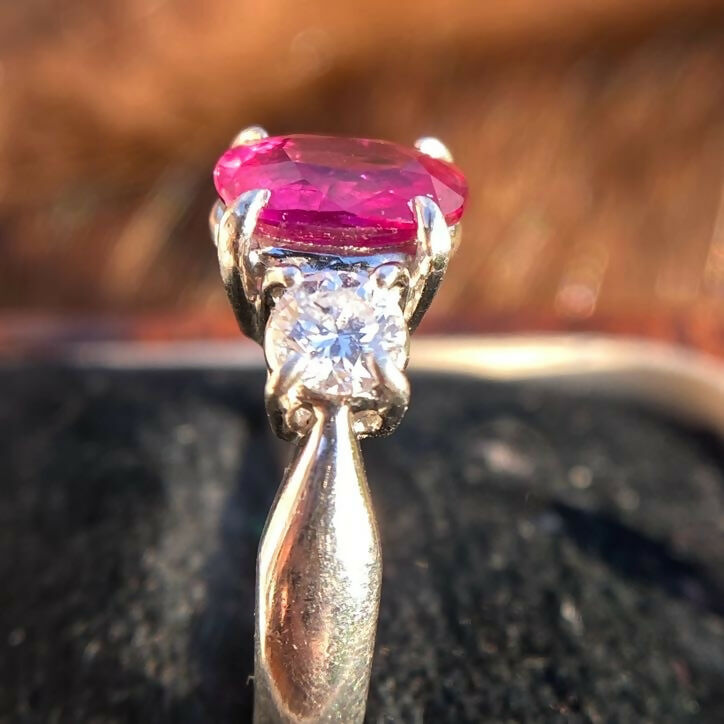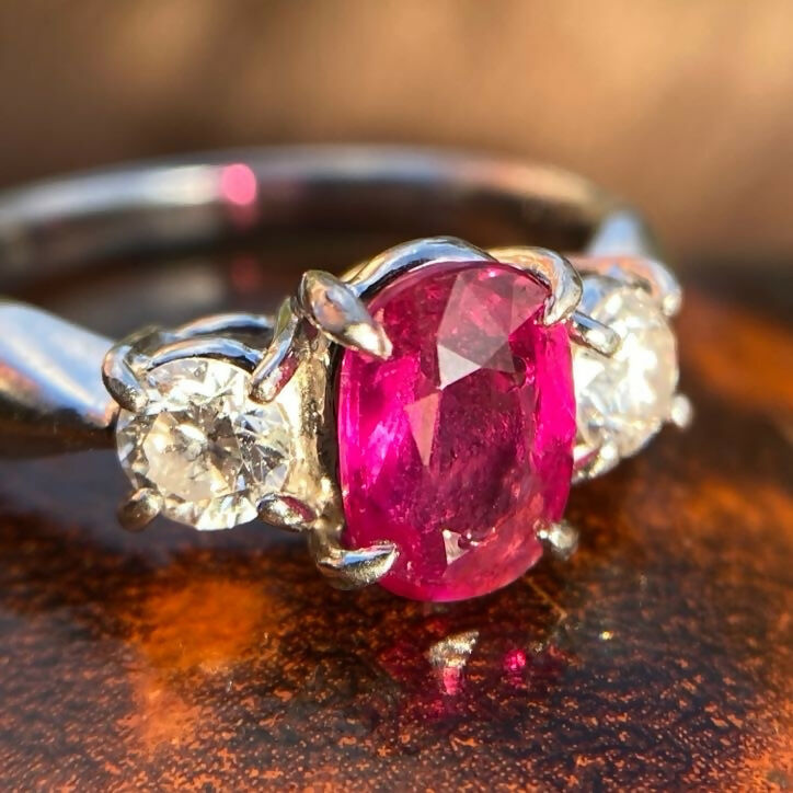 Vintage Platinum Ruby(1.06ct) Diamond(0.36ct) Trilogy Ring