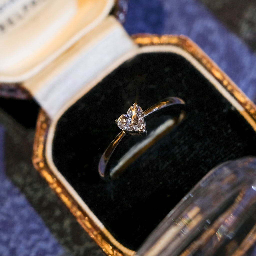 18ct White Gold Fancy Cut Heart Shape Diamond (0.42ct) Solitaire Ring Size Q