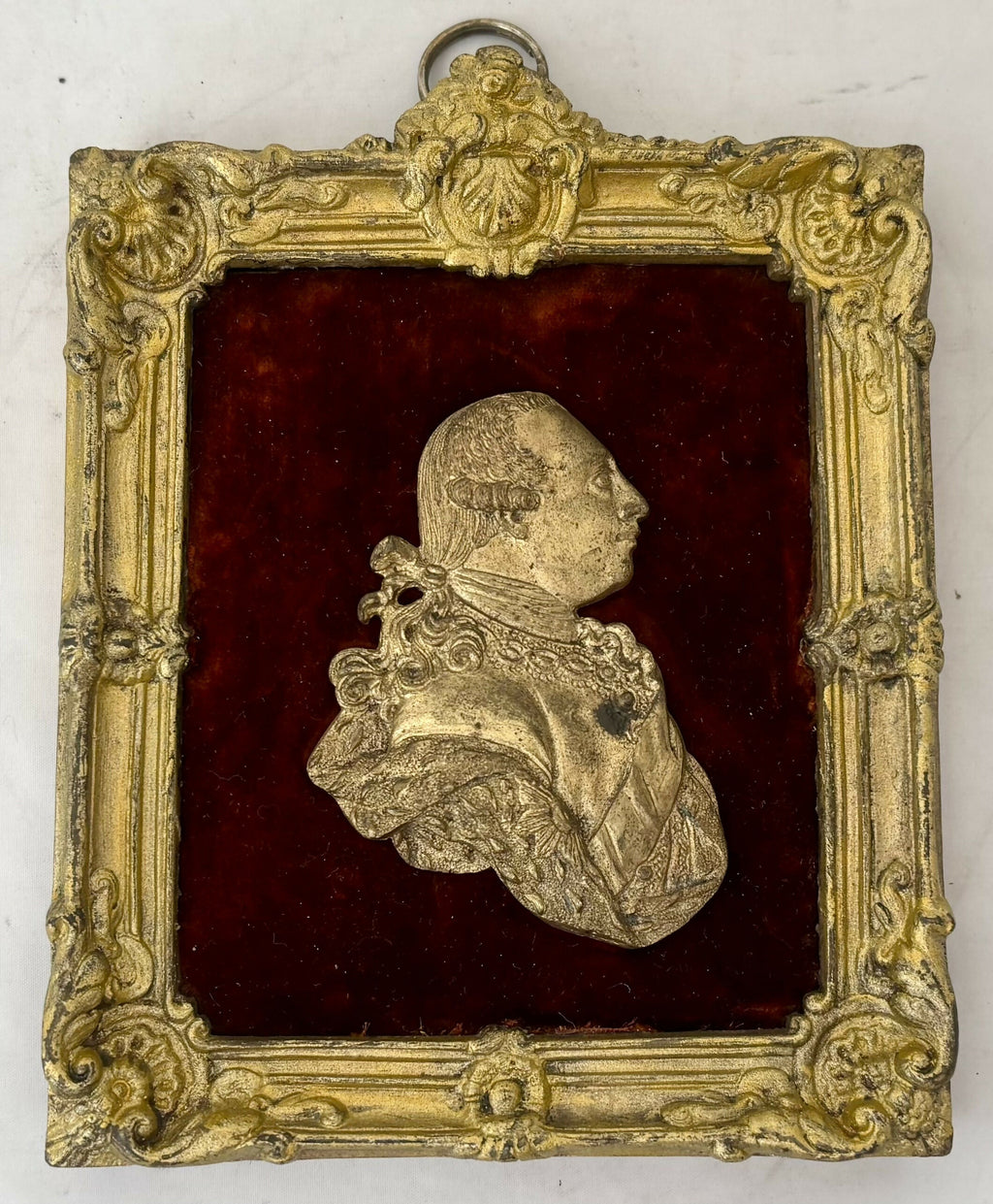 George III, An Early 19th Century Gilt Metal Portrait Profile Bust. Mounted on Velvet in Contemporary Gilt Frame.