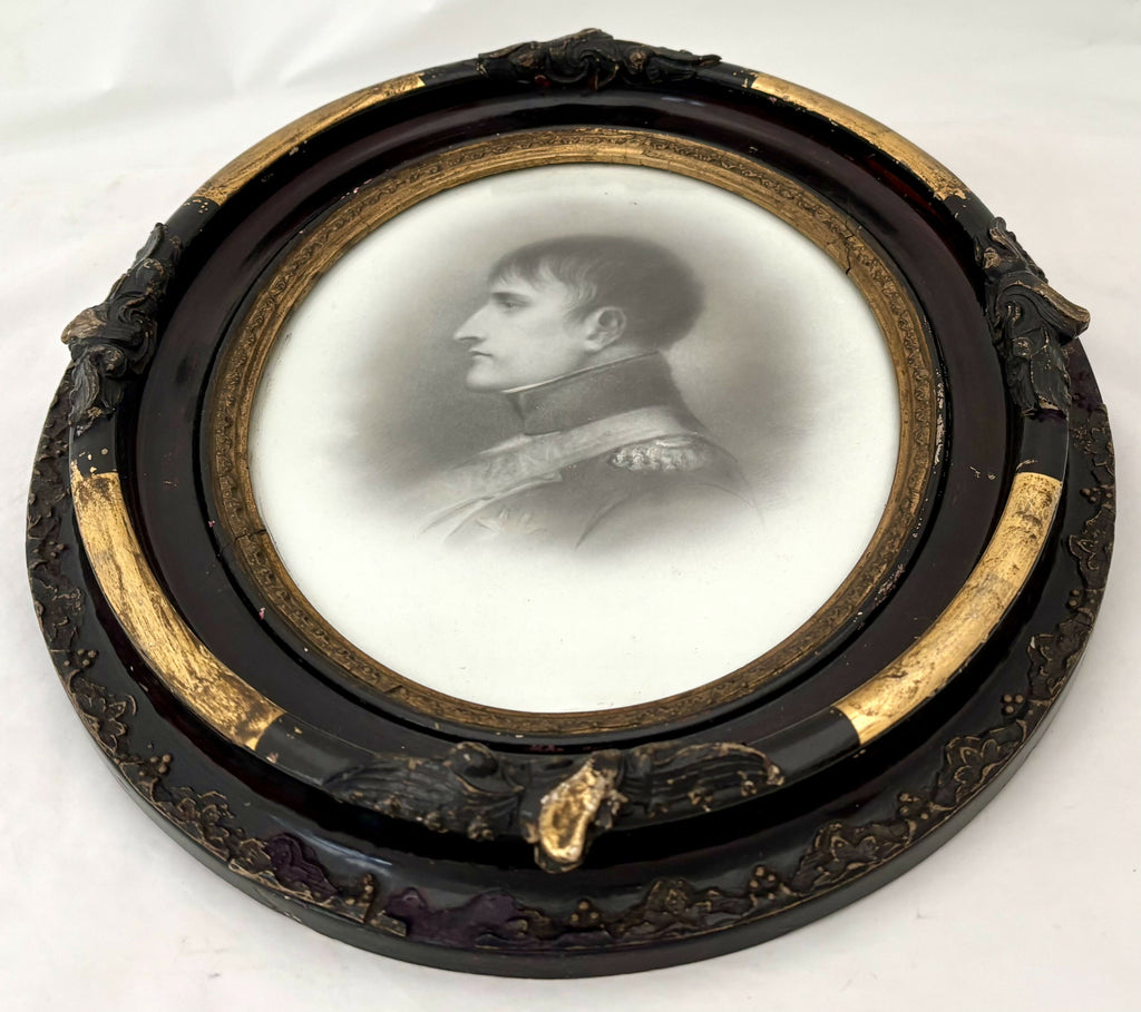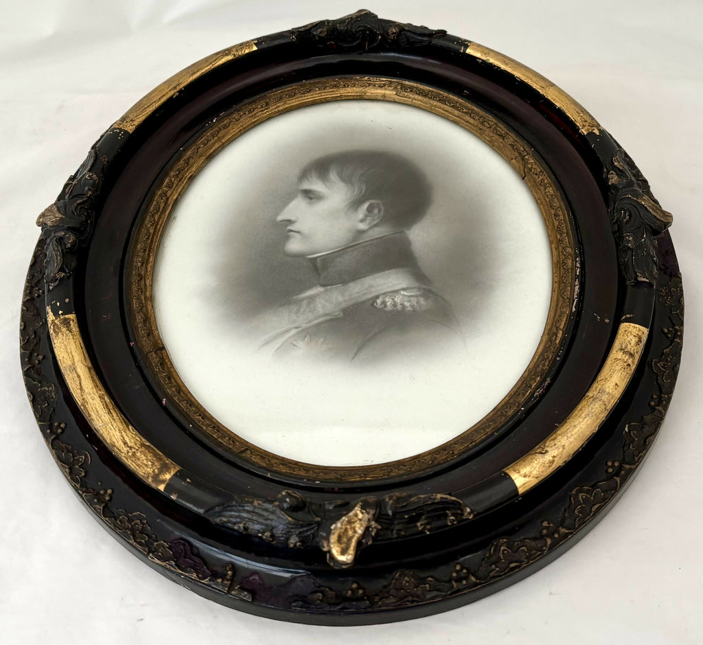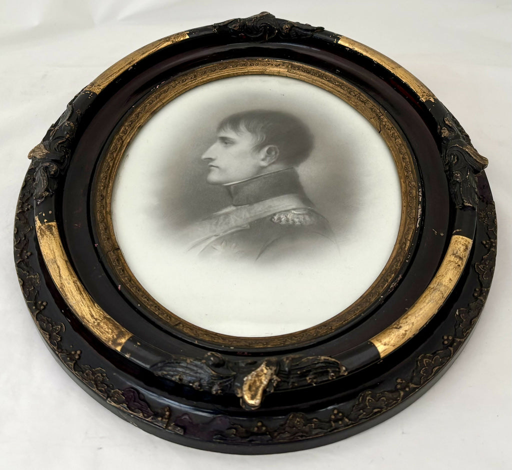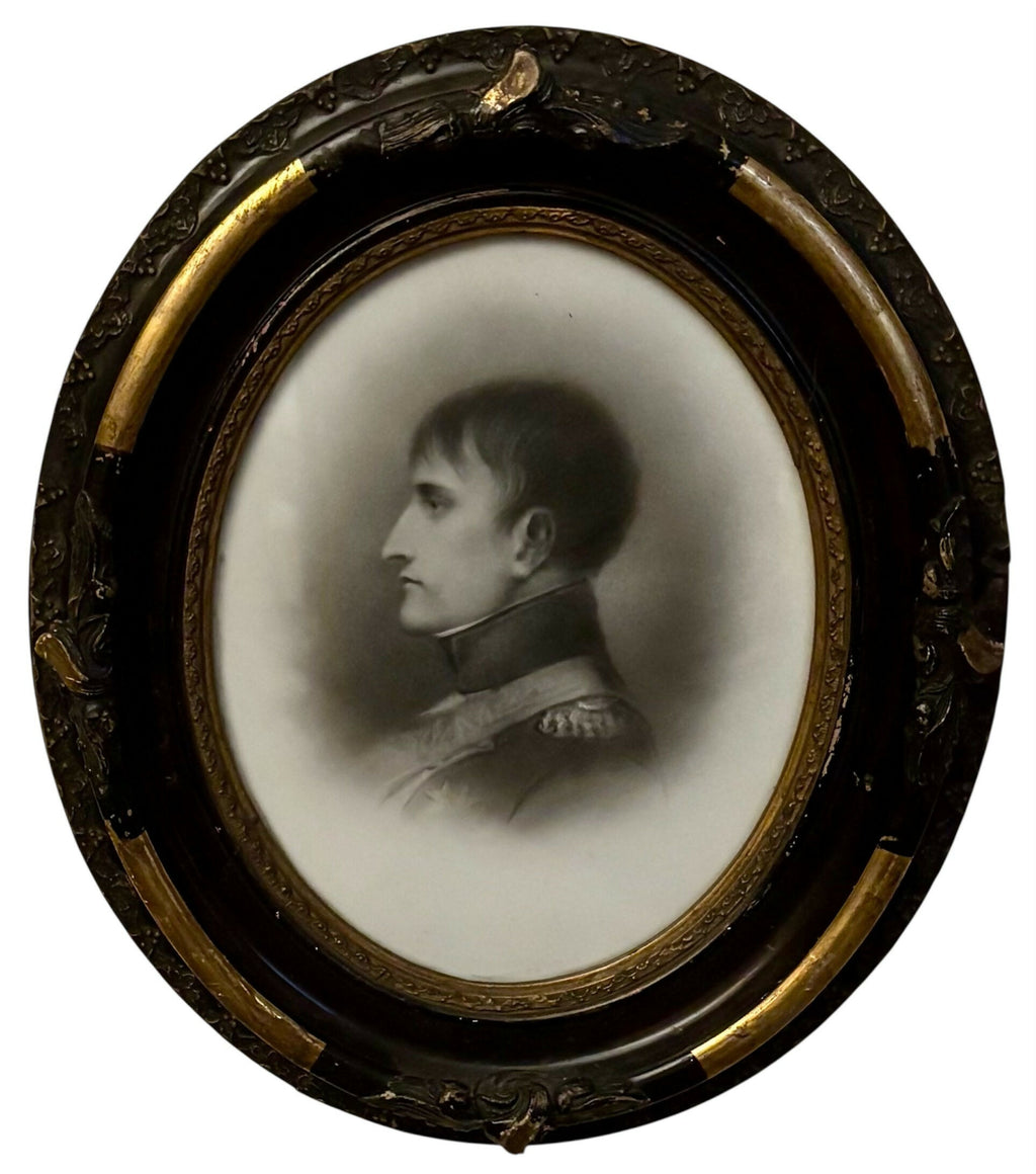 Napoleon Bonaparte Hand Tinted Ceramic Portrait Profile, 19th Century. From Strawberry Hall, near Wisbech. The plaque is most likely ceramic, or possibly an opaque glass. The plaque is glazed.