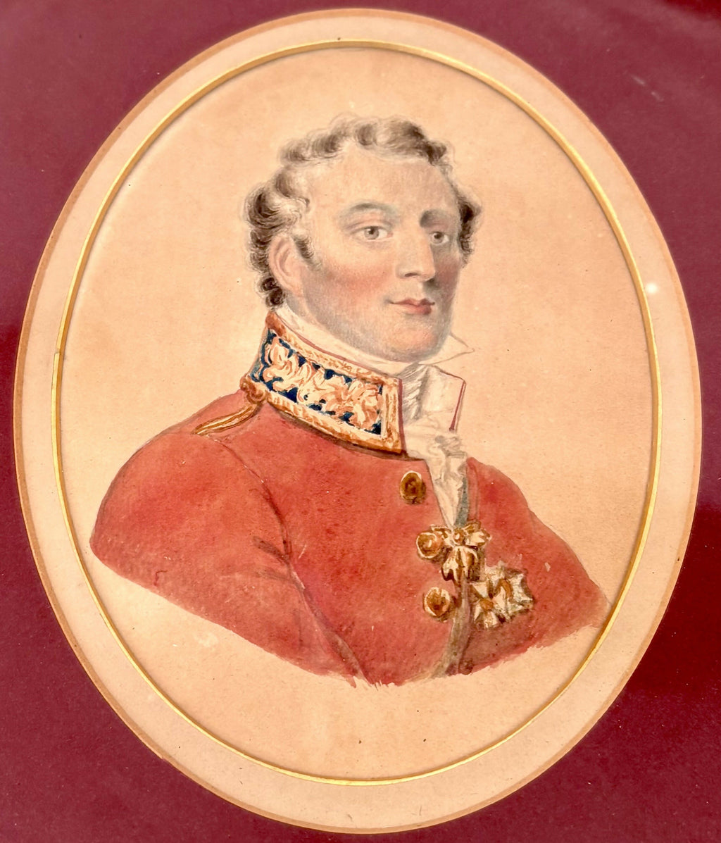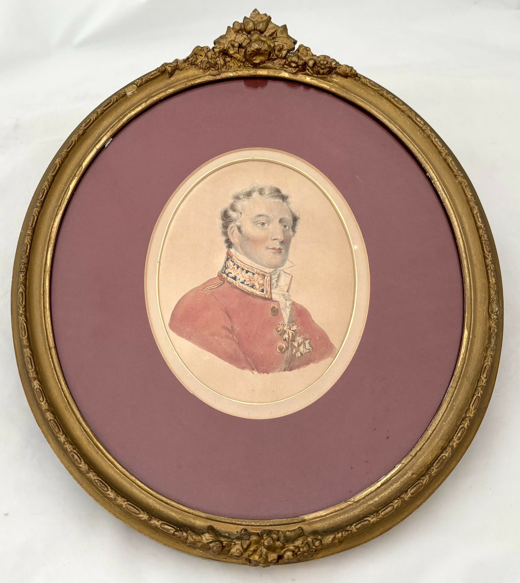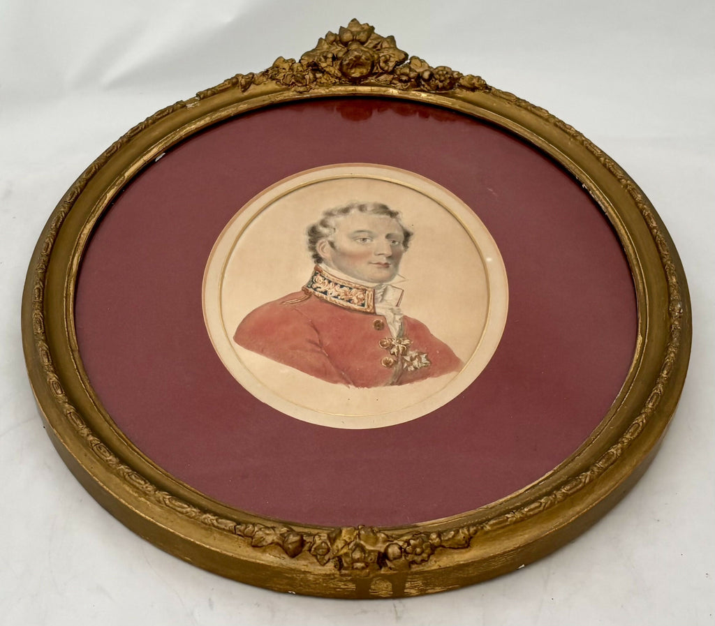 The Duke of Wellington 19th Century Watercolour on Card, in an Oval Gilt Frame.