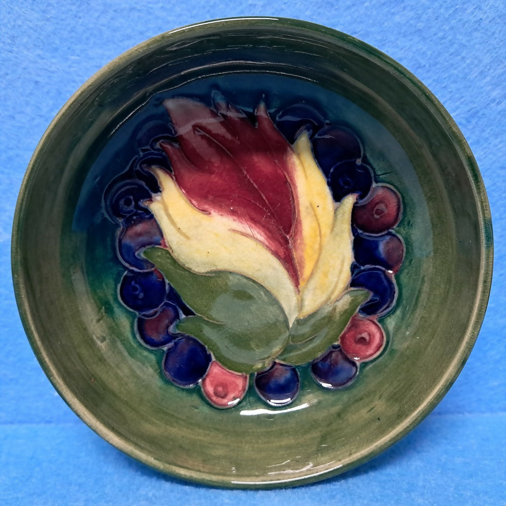 A vintage Moorcroft footed bowl in the Leaf and Berry design by William Moorcroft.