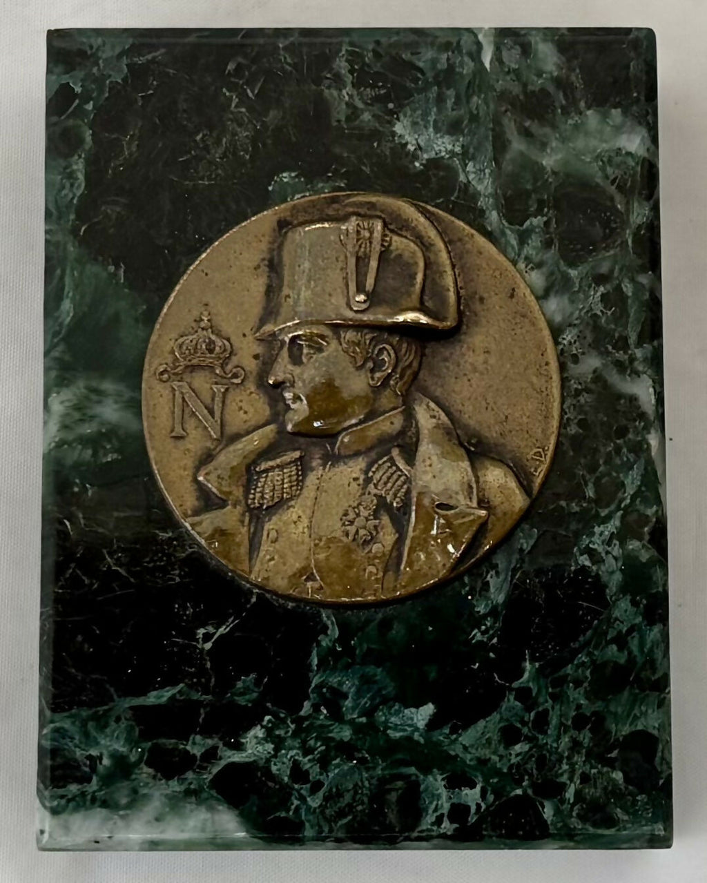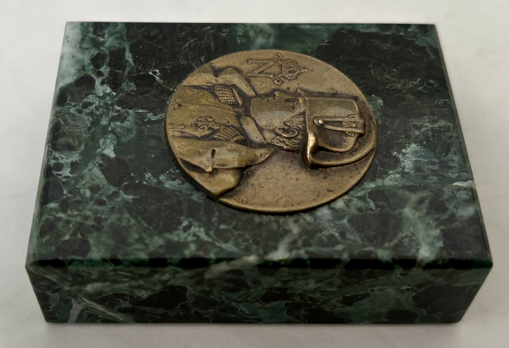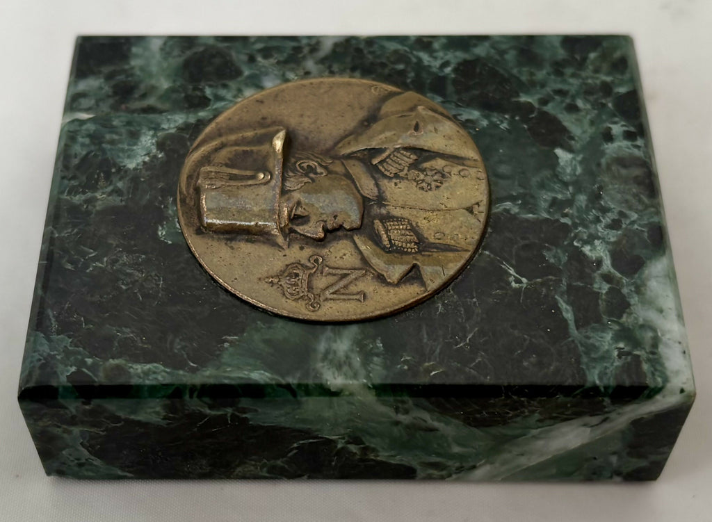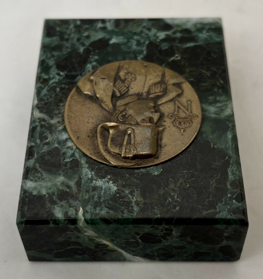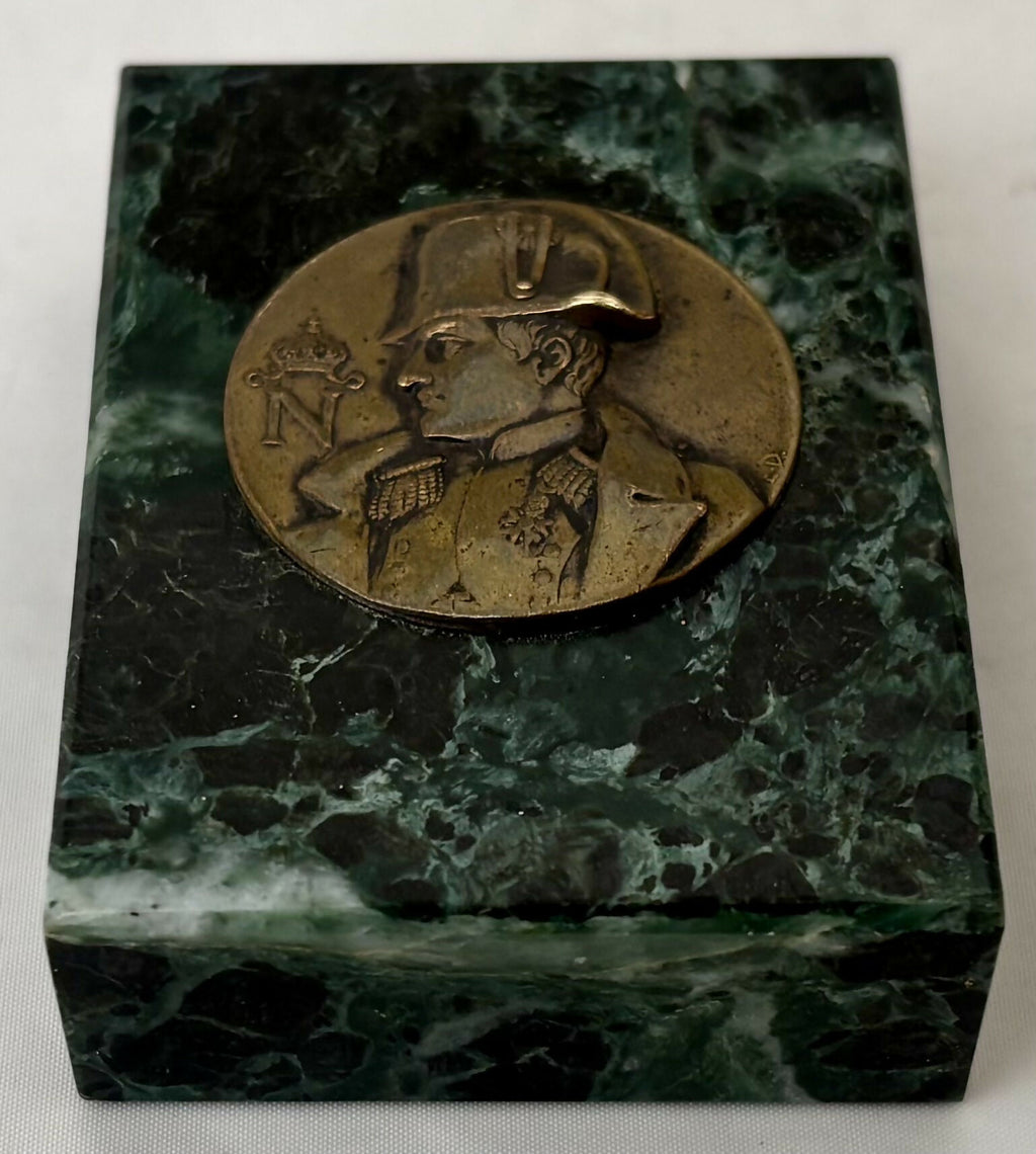 Napoleon Bonaparte Gilt Metal Portrait Profile Roundel Inset into a Marble Desk Weight. From Strawberry Hall, near Wisbech.