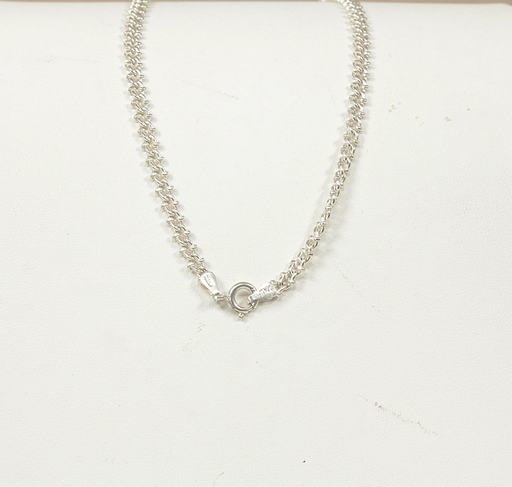 It is paired with a chunky 16-inch fancy link Silver chain, similar in style to an anchor link, which complements the pendant perfectly. Both the pendant and chain are stamped 925 and Italy, confirming their sterling silver quality and Italian craftsmanship.