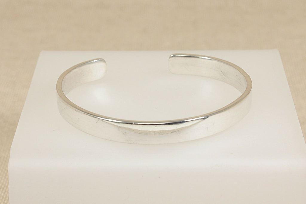 This simple yet stylish Silver tension bangle exudes understated elegance. Smoothly polished with a consistent depth and rounded edges at the opening, it offers a comfortable and refined fit.