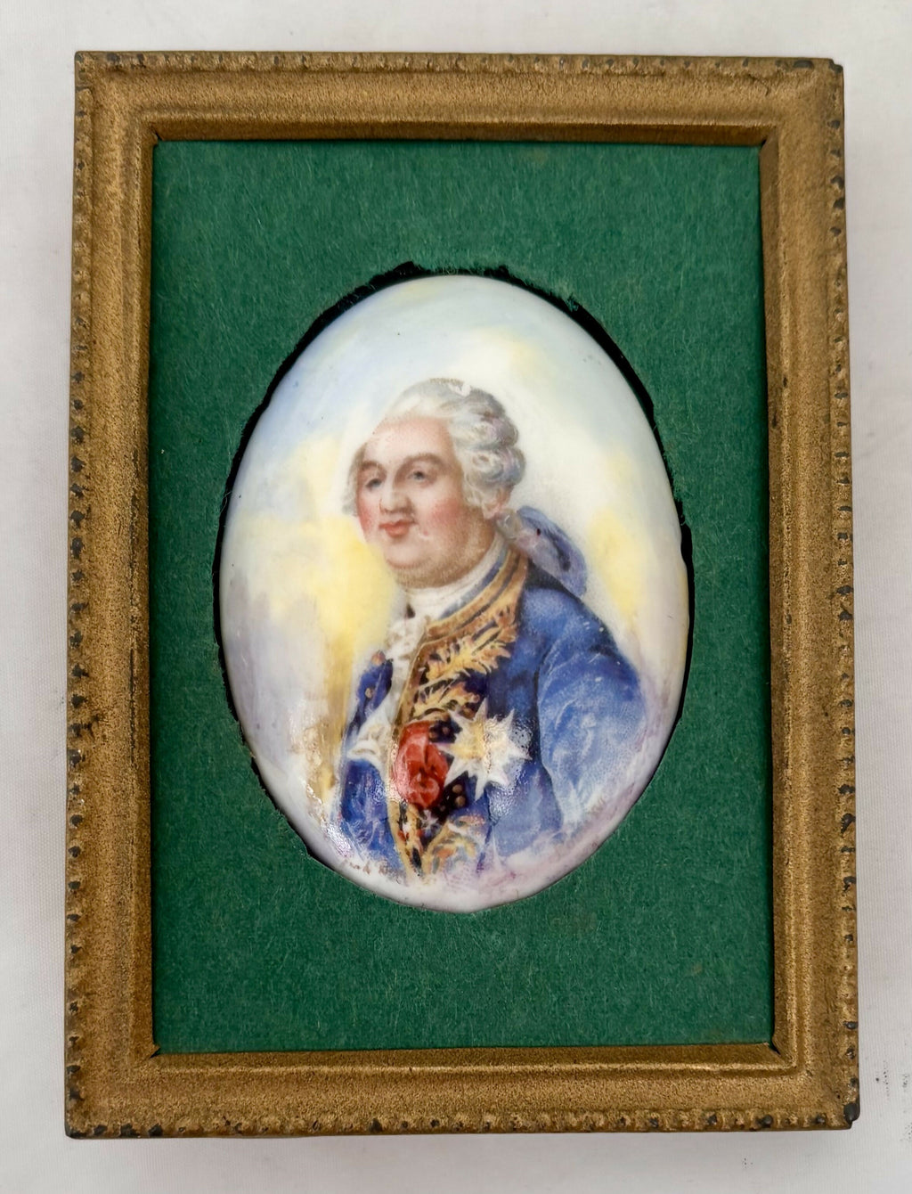 Louis XVI Ceramic Portrait Plaque. The ceramic plaque is of oval convex form, transfer printed and hand tinted. Probably dating to the late 19th, or early 20th centuries.