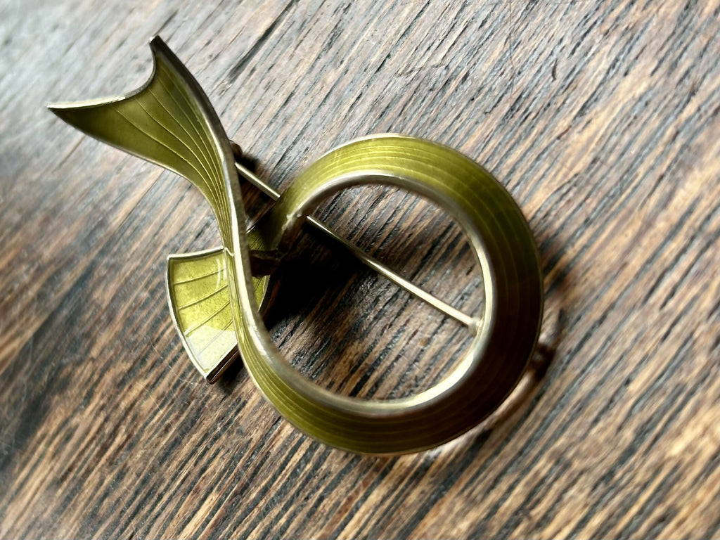 The use of leaf green enamel adds a pop of elegance and visual interest, enhancing the brooch's appeal.