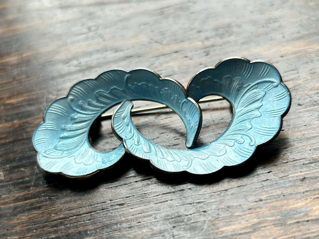 The use of powder blue enamel adds a pop of elegance and visual interest, enhancing the brooch's appeal.