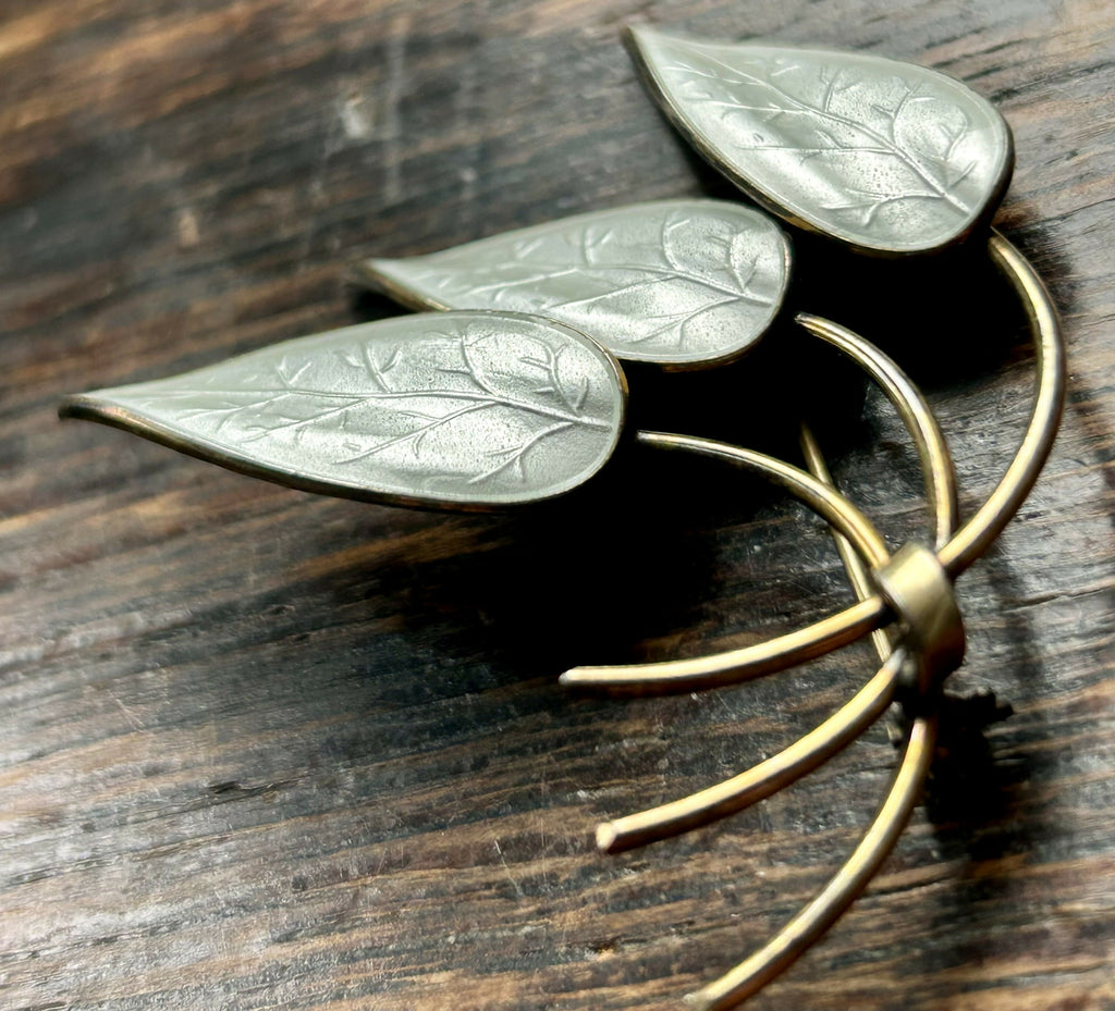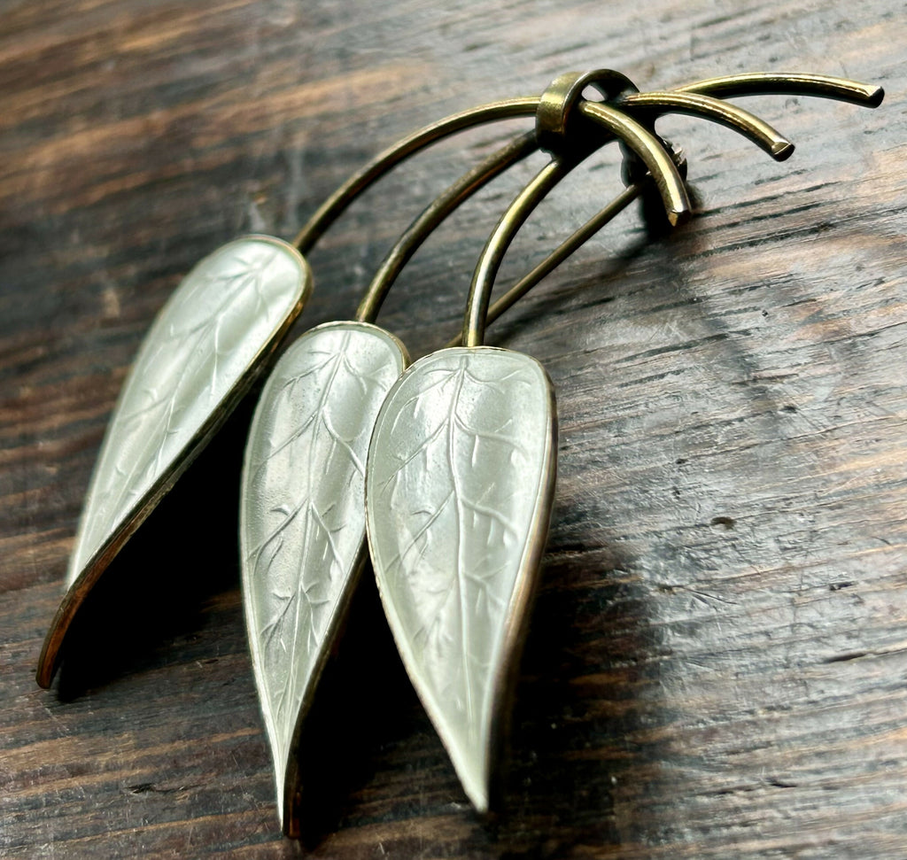 Modern Mid Century Norwegian Ivar T Holmsen Sterling Silver Snowdrop White Enamel Brooch