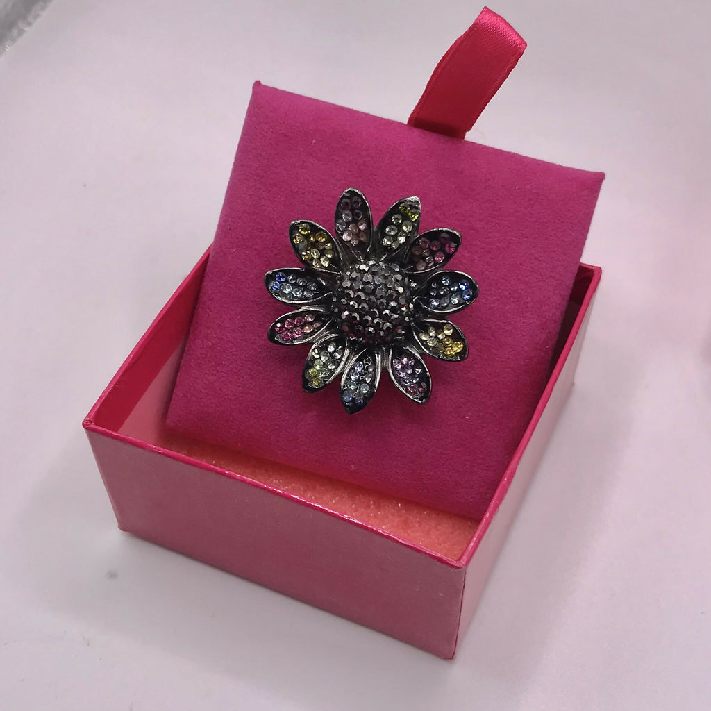 Butler and Wilson Large Multicoloured Rhinestone Daisy Ring UK Size P