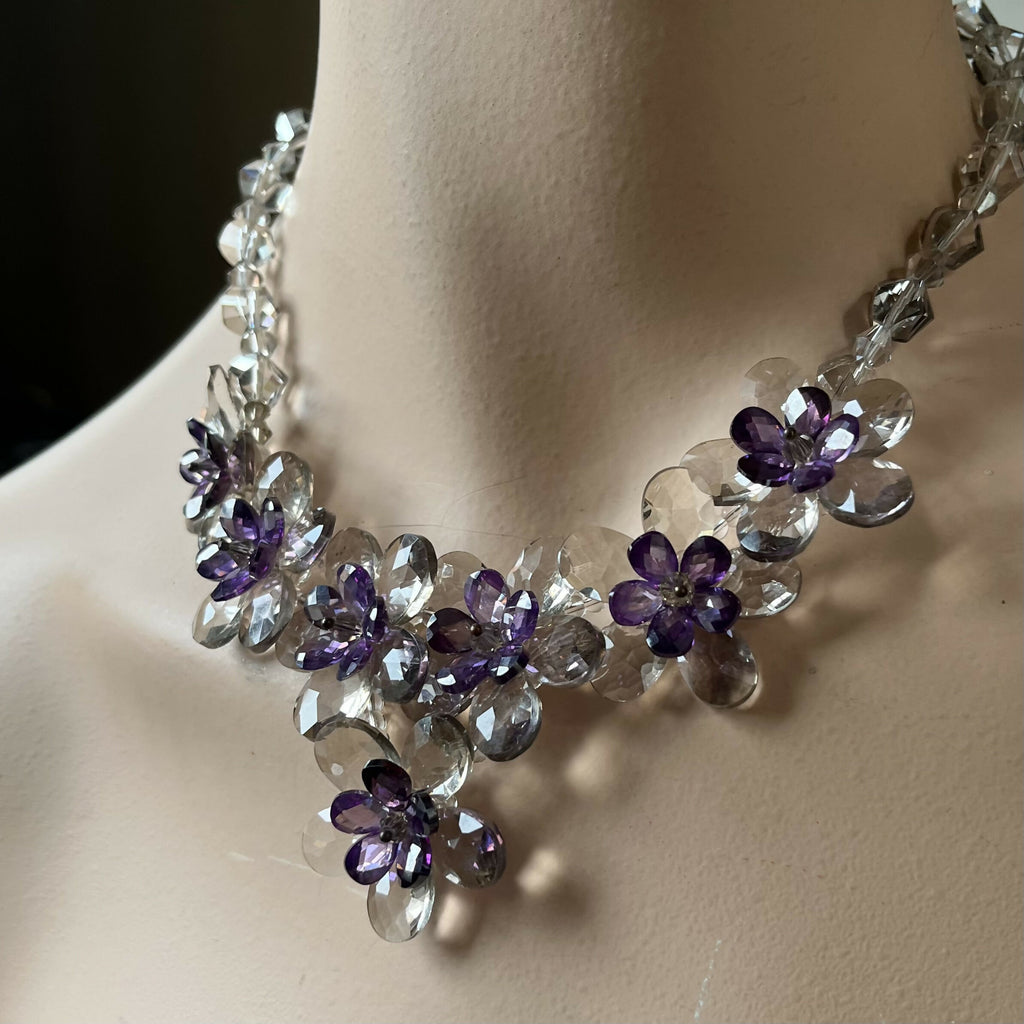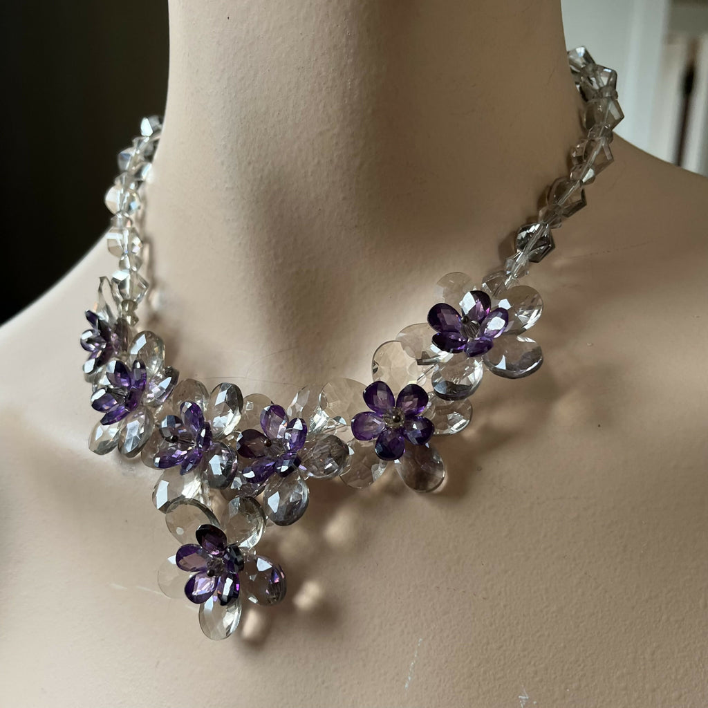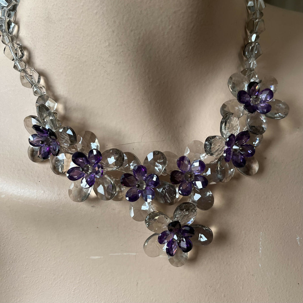 Butler and Wilson Lavender and Clear Glass Flower Necklace.