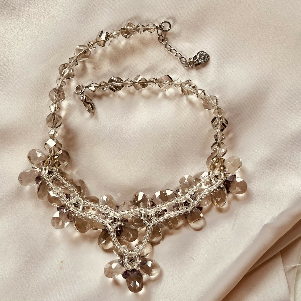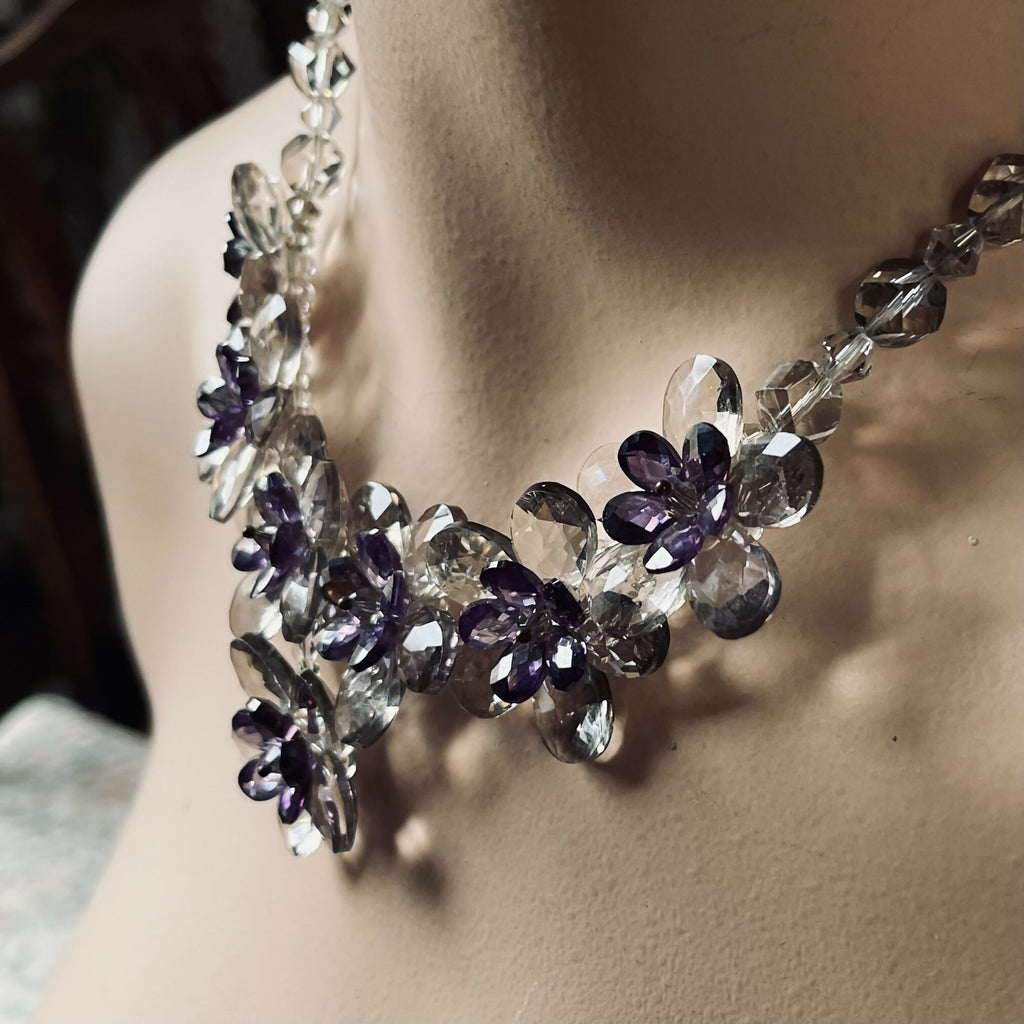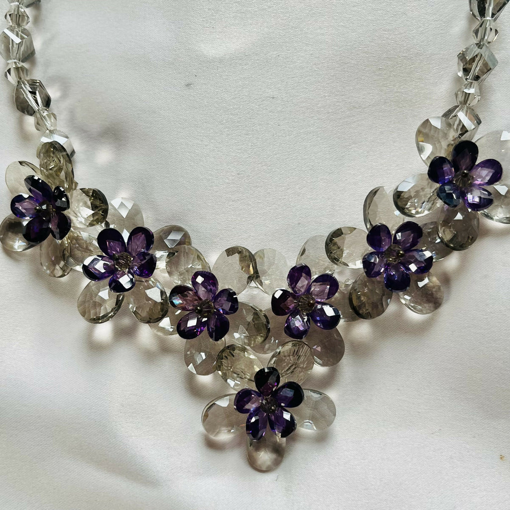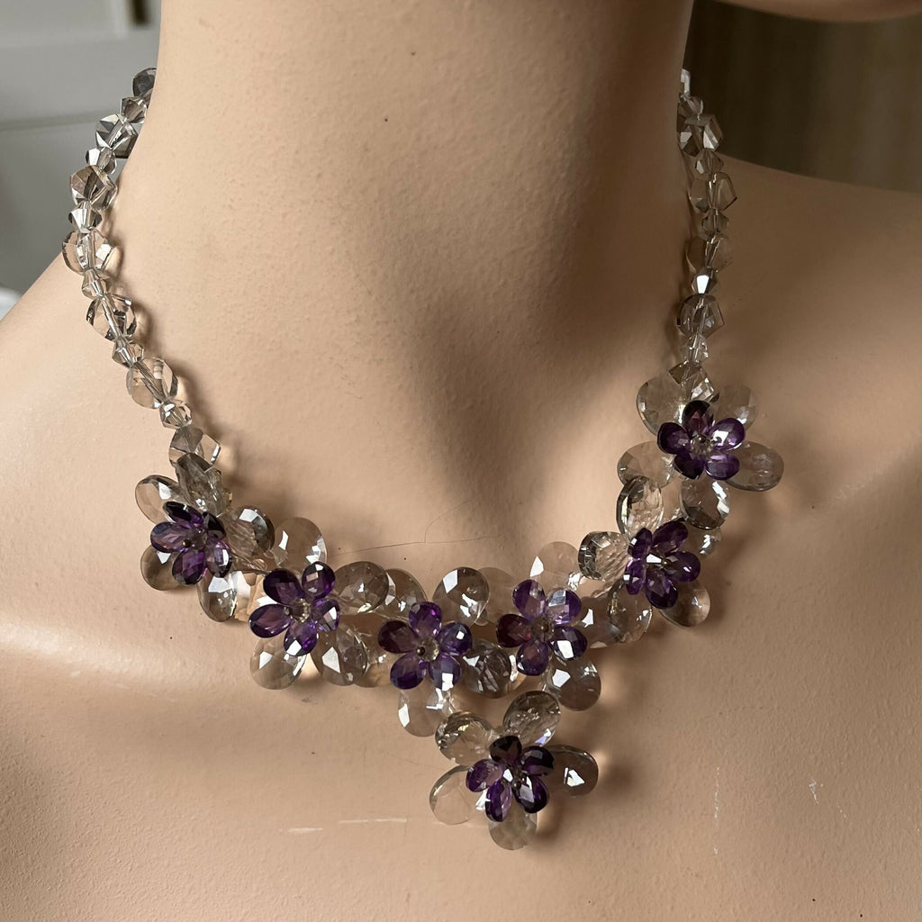 Butler and Wilson Lavender and Clear Glass Flower Necklace.