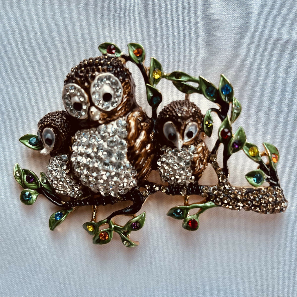 Butler and Wilson Owl and Owlets in Tree Brooch