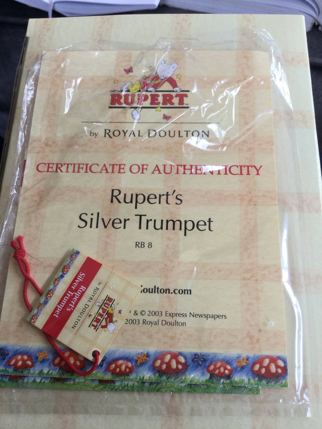 Royal Doulton Rupert The Bear Ruperts Silver Trumpet figure Boxed with Certificate Made in 2004 In excellent condition with no cracks chips or restoration