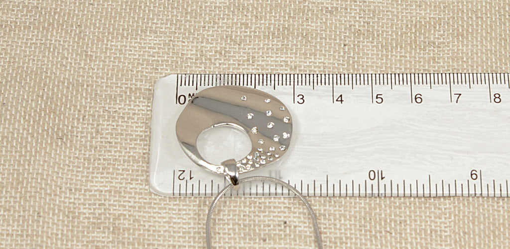 This elegant Italian Silver pendant features a round, wavy design with a central cut-out detail, delicately inset with scattered crystals that catch the light beautifully. Measuring approximately 1 inch in diameter, the pendant makes a subtle yet eye-catching statement.