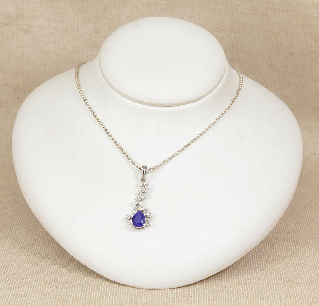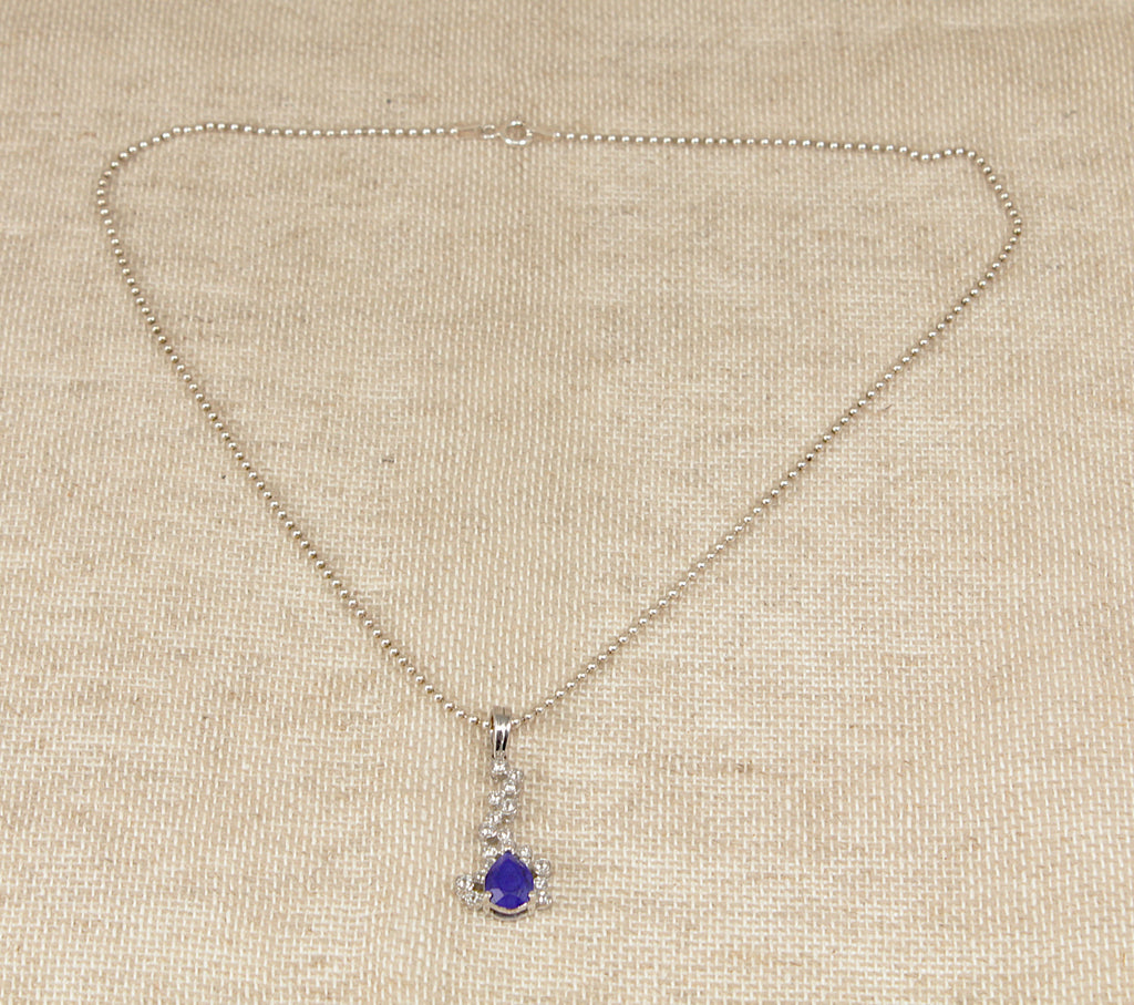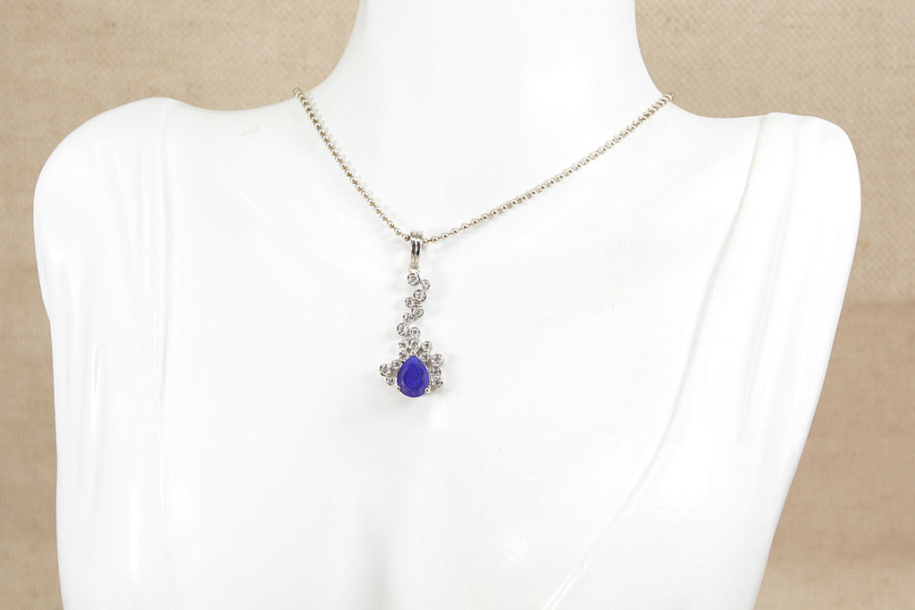 This elegant Silver Lapis Lazuli and White Quartz Pendant features a beautifully claw-set pear-shaped faceted lapis lazuli in a rich, deep blue tone.