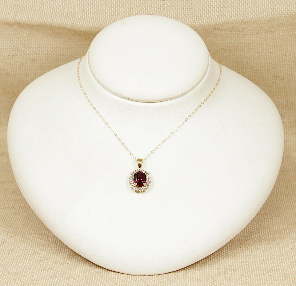 9ct Gold Almandine Garnet & White Topaz Pendant & Chain