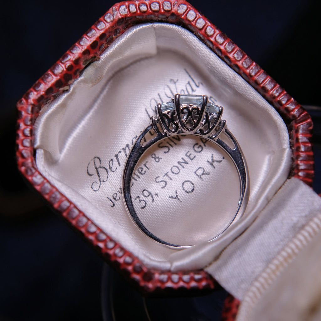 9ct White Gold Aquamarine Trilogy Ring With Diamonds Size P