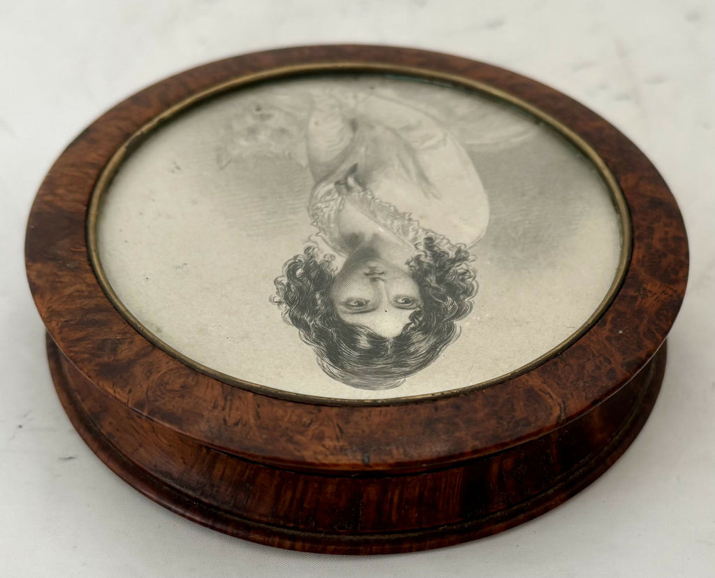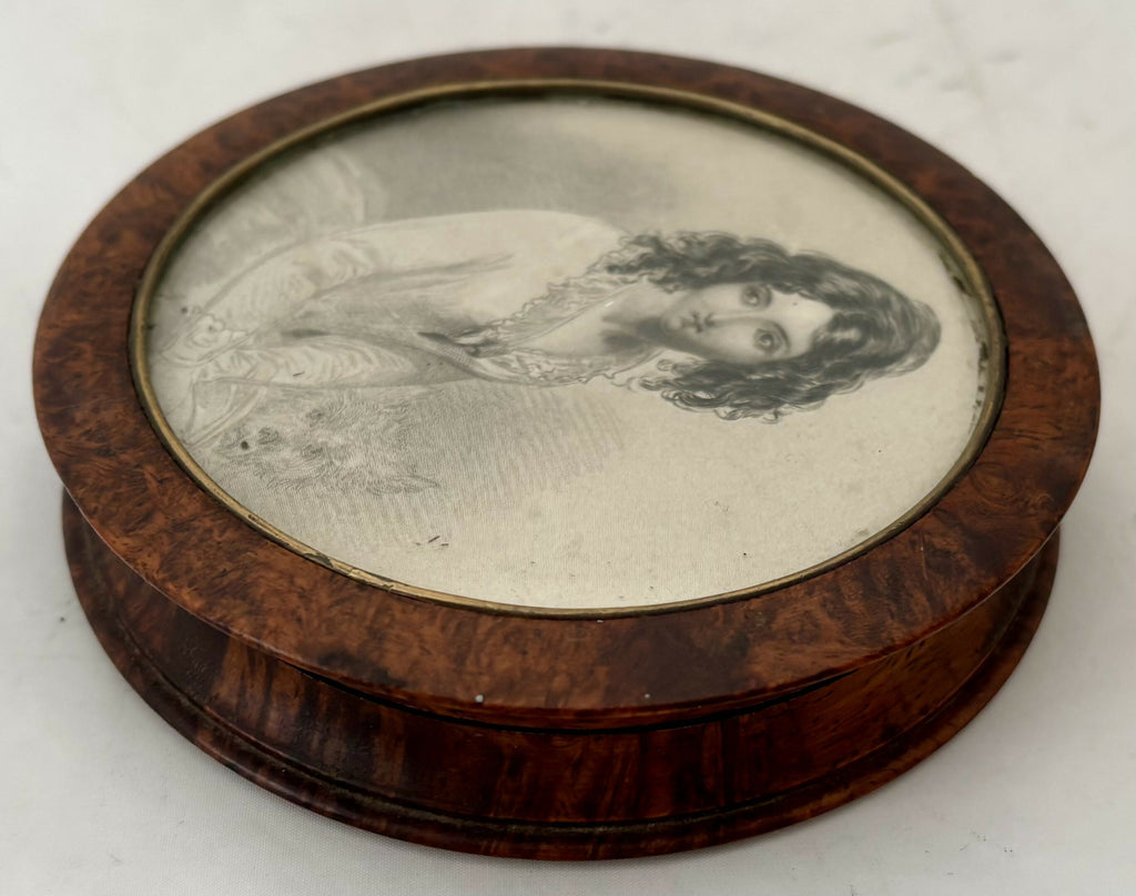 Early Victorian Amboyna Portrait Snuff Box, circa 1840.