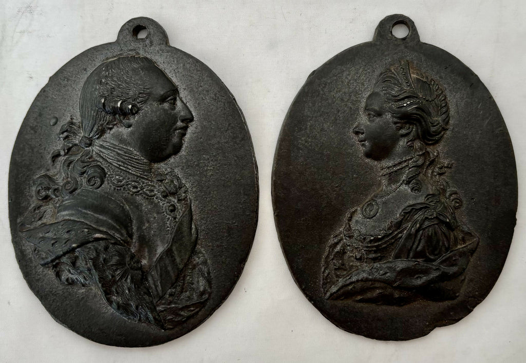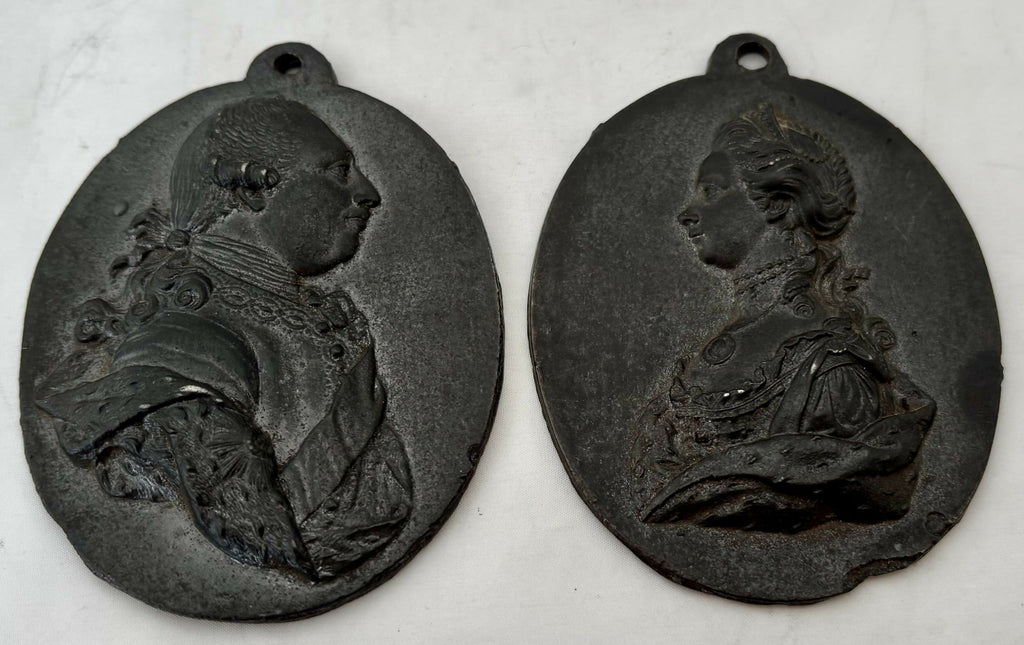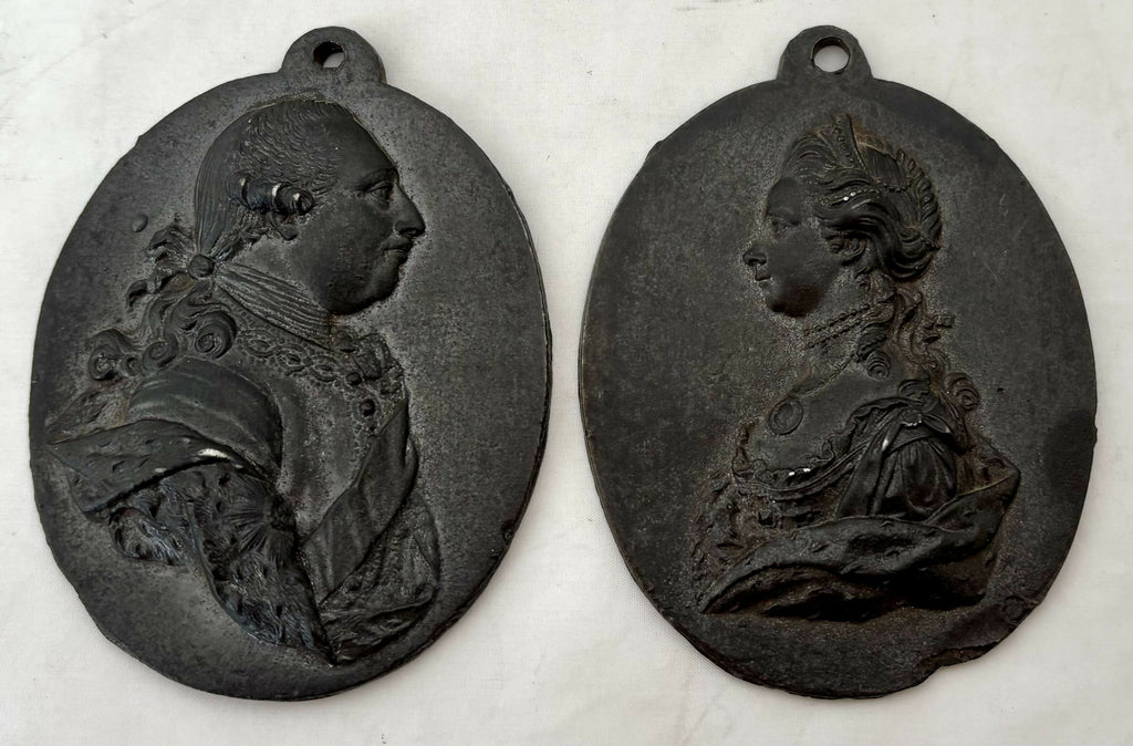 George III & Queen Charlotte Portrait Profile Cast Iron Plaques. The plaques date to the late 18th or early 19th centuries.