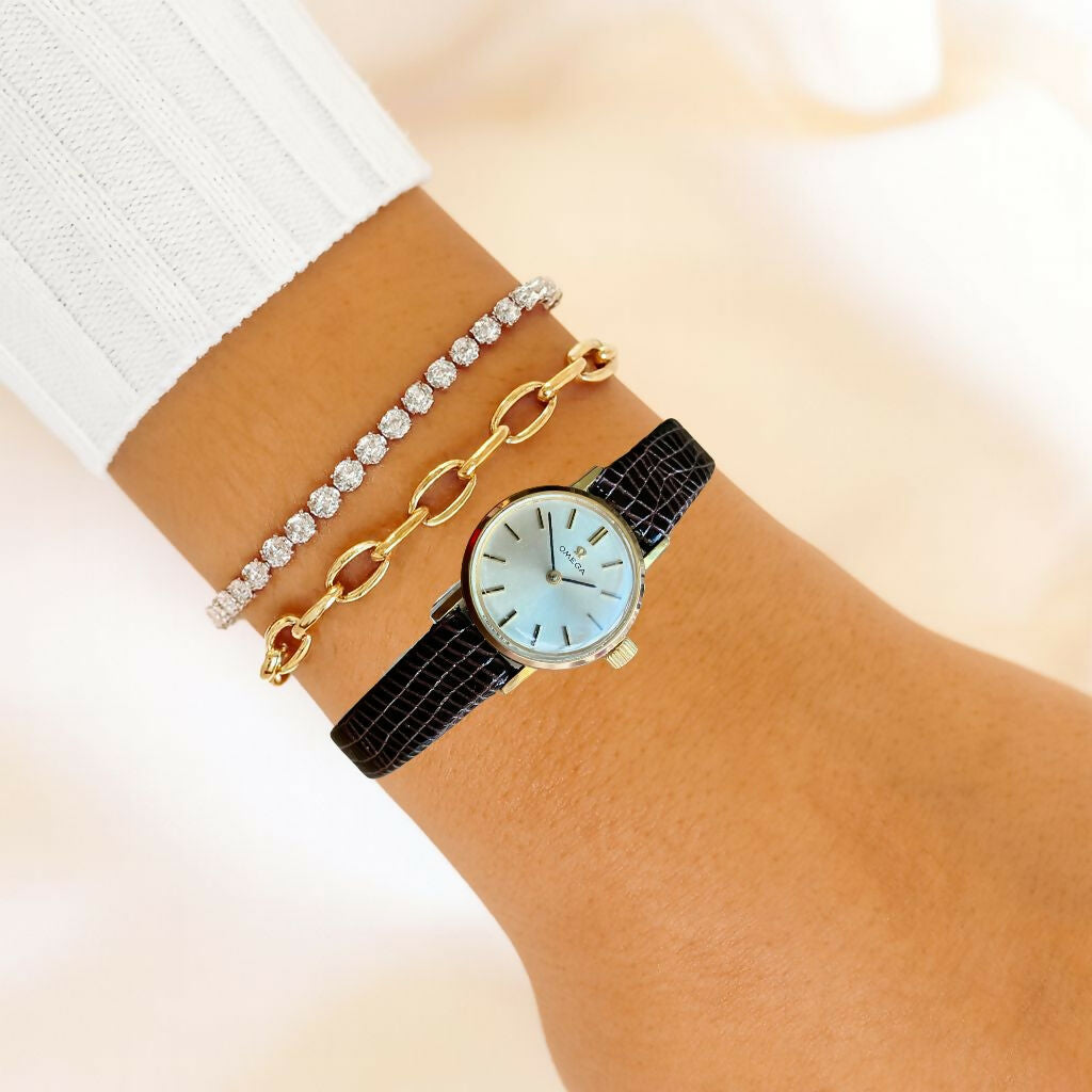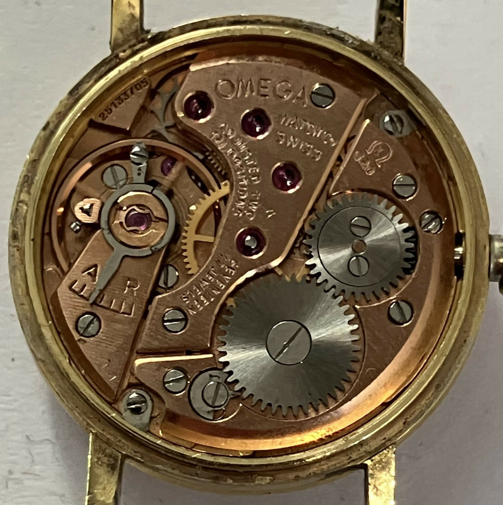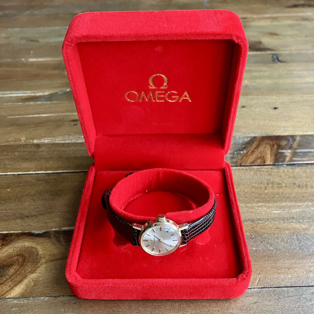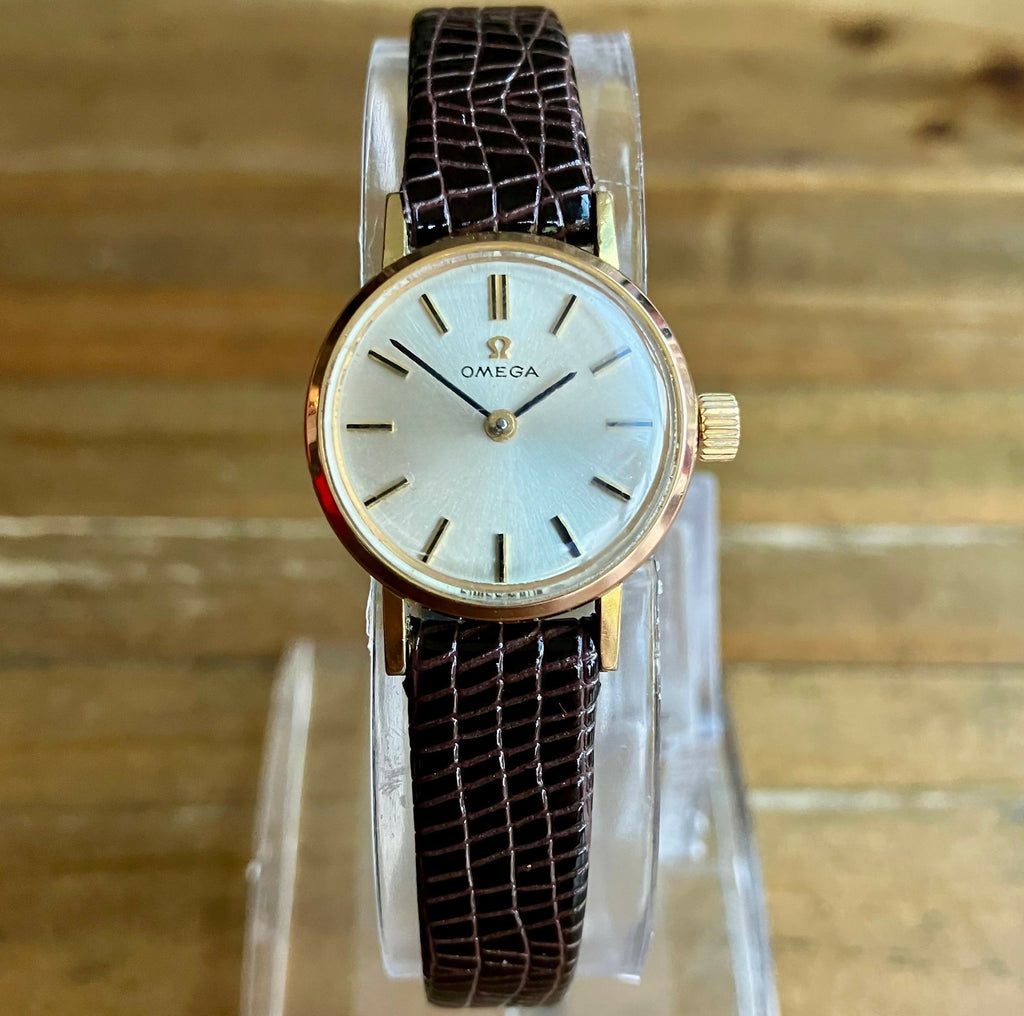 This example is powered by the manual-wind Omega calibre 620, a reliable and well-regarded movement of the period. The gold-plated case houses a clean dial with applied hour markers and original hands, displaying classic late-1960s design.