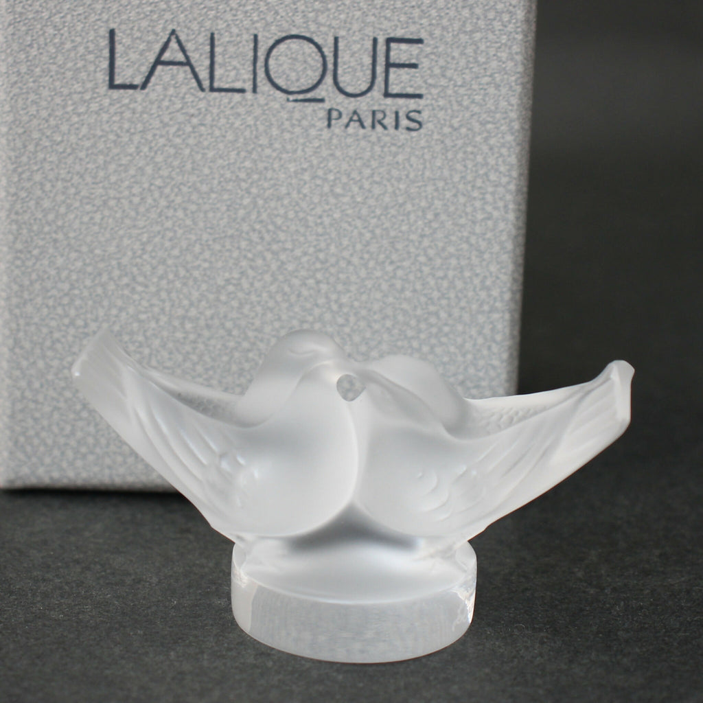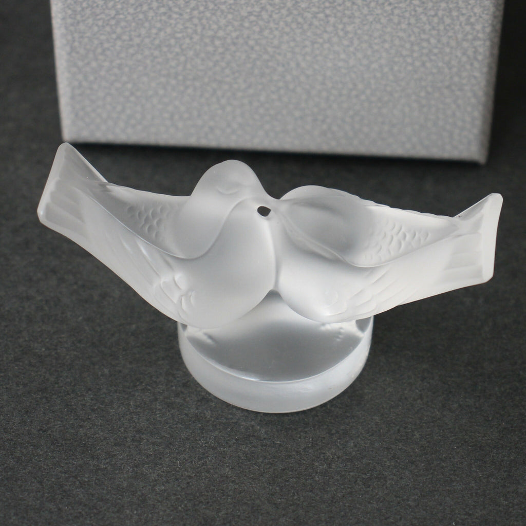 This modern Lalique small paperweight features a pair of kissing love birds.
