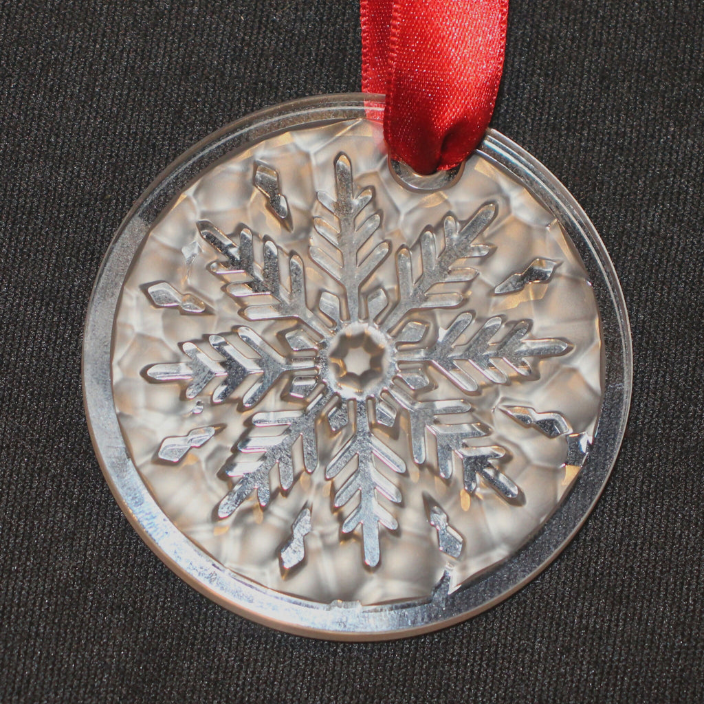 Each year Lalique produces different Christmas ornament designs. The 2025 design is a snowflake. The decoration is available in clear and gold crystal. This listing is for the clear decoration.