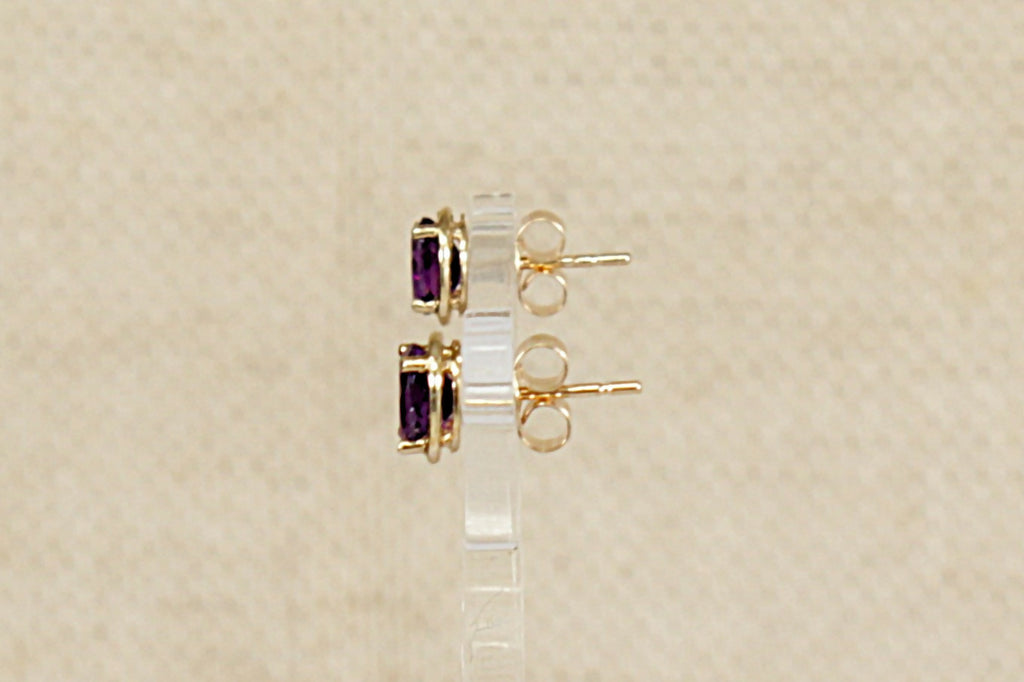 This lovely pair of 9ct Gold ear studs features oval-cut amethysts set in classic four-claw mountings, allowing the stones to catch the light beautifully. Crafted with secure stud fastenings, the earrings bear Sheffield hallmarks for 1996, confirming their authenticity and quality.