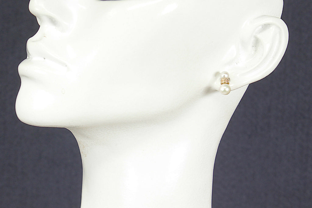 This elegant pair of 9ct Gold earrings features two round cultured pearls of graduating size, set closely together and separated by two sleek gold bands for a refined, contemporary look.