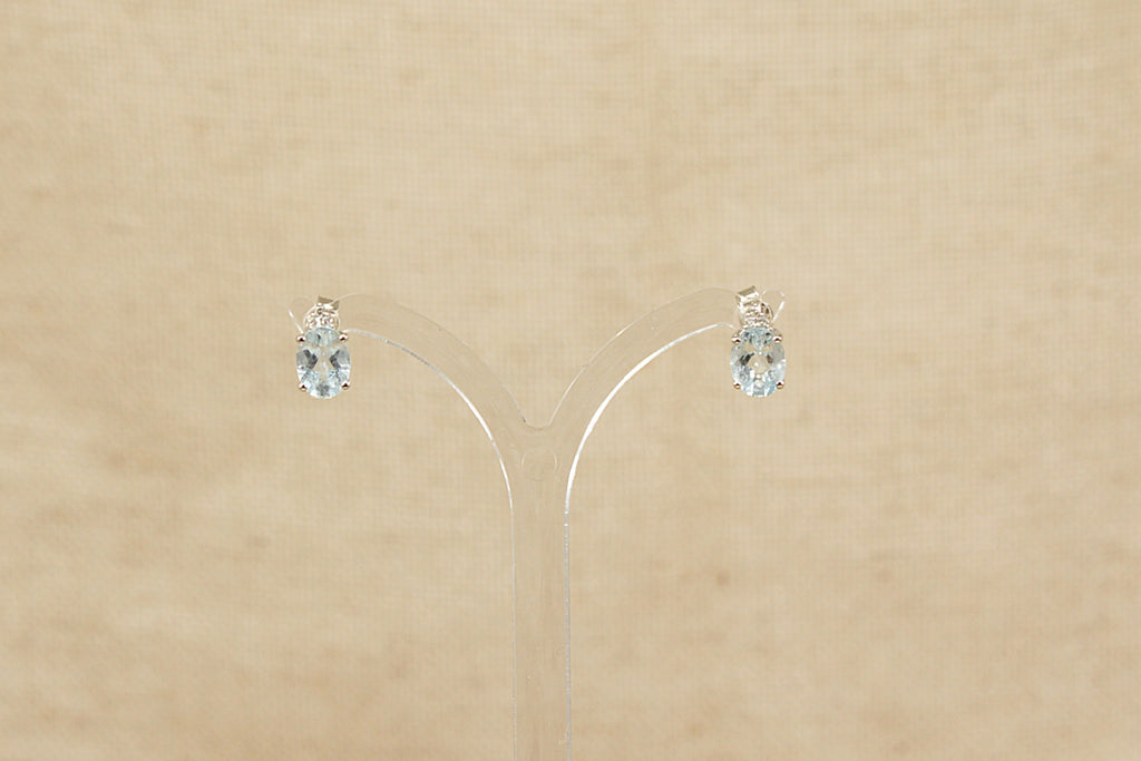 9ct White Gold Aquamarine and Diamond Ear Studs