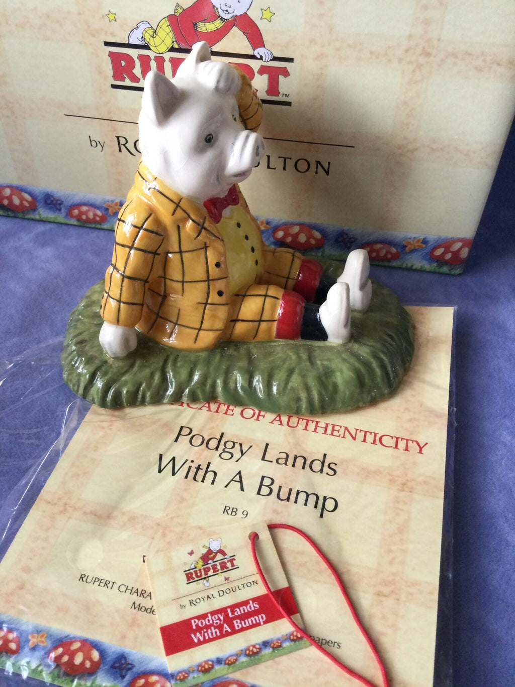 Royal Doulton Podgy land with a bump From Rupert The Bear RB9 Boxed with Certificate In excellent condition with no cracks chips or restoration