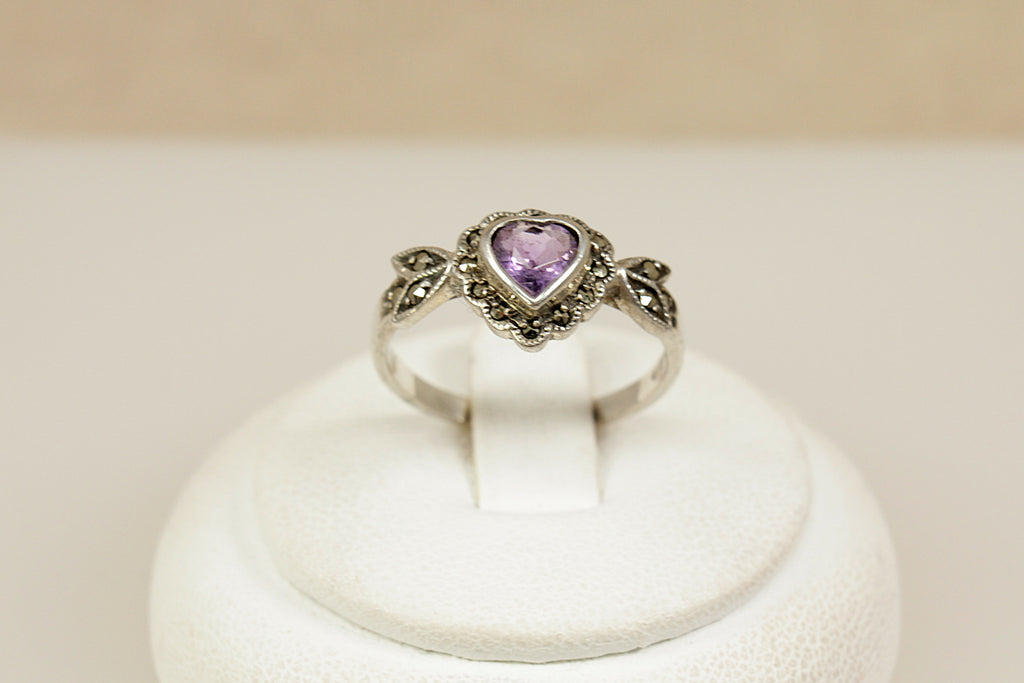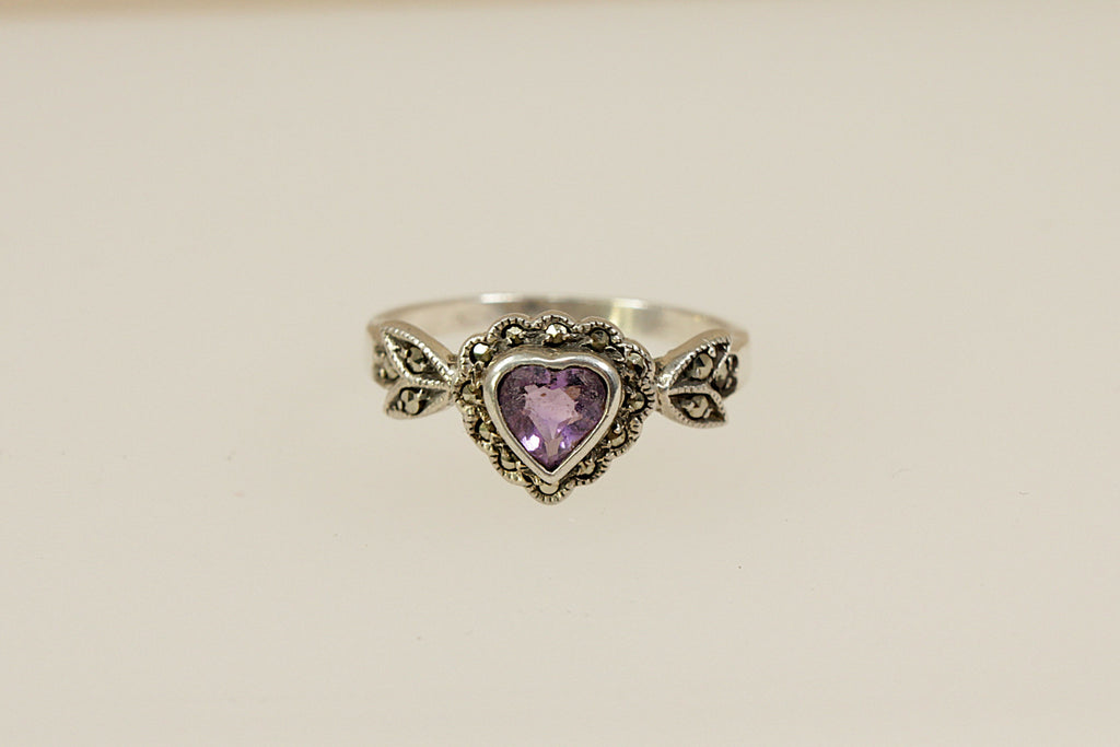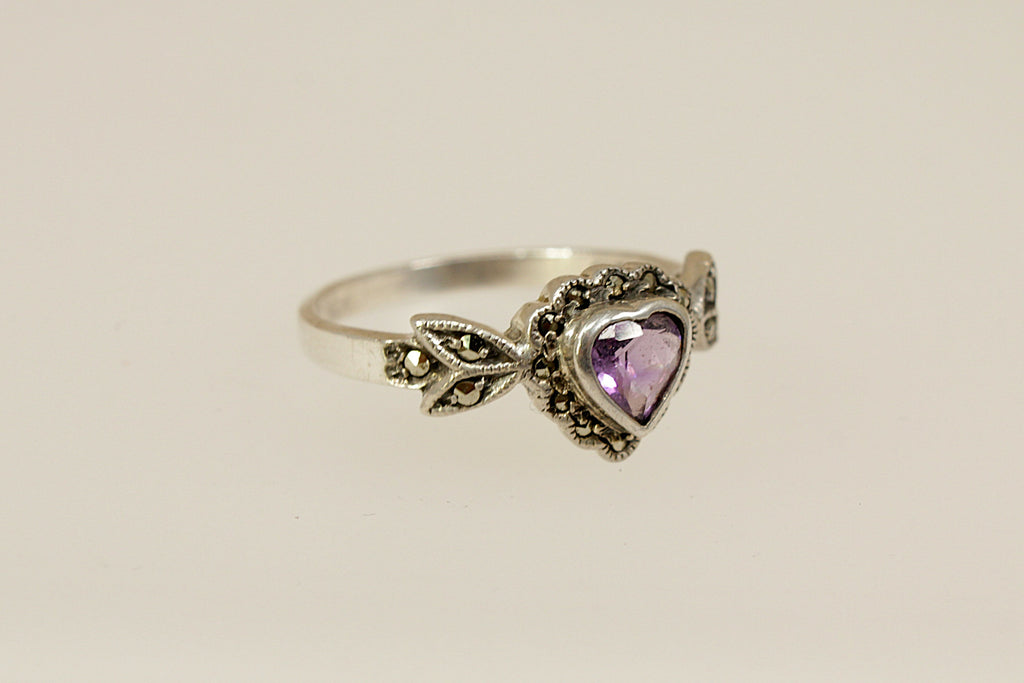 Silver Amethyst & Marcasite Heart Ring