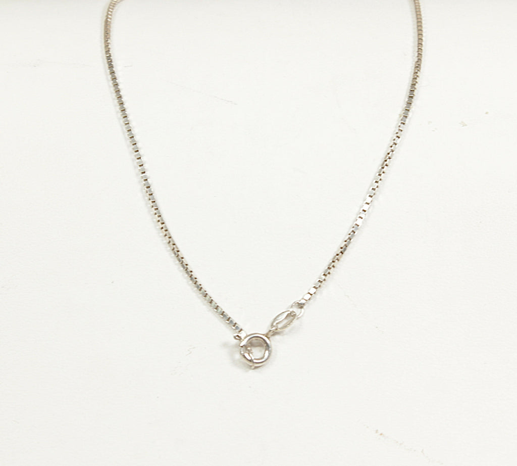 The pendant has a subtle domed shape, giving it lovely depth and dimension, and measures approximately 1¼ inches in length and 1 inch across at its widest point. Stamped 925 for sterling silver, it is paired with a sleek 16-inch Italian silver box chain stamped ITALY, completing this elegant and romantic piece.