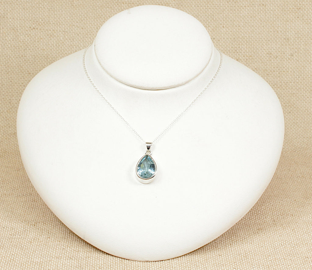 Silver & Topaz Pear Pendant & Chain