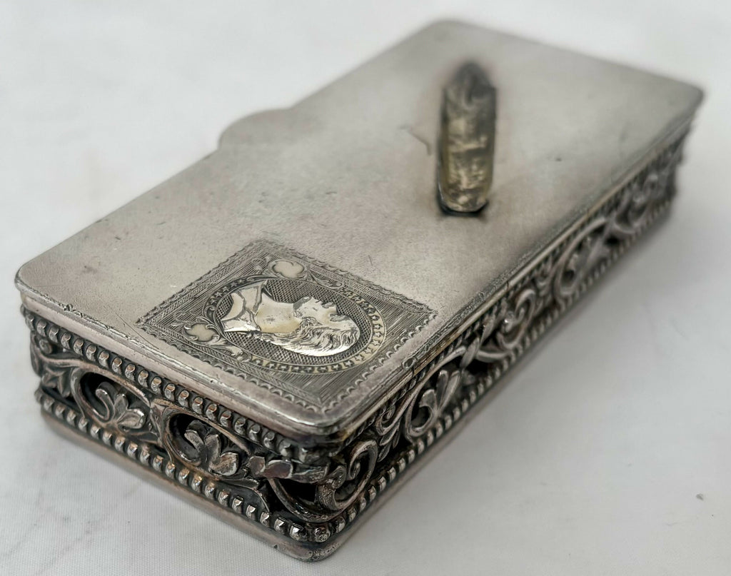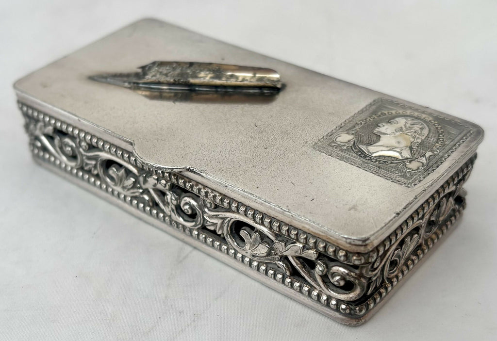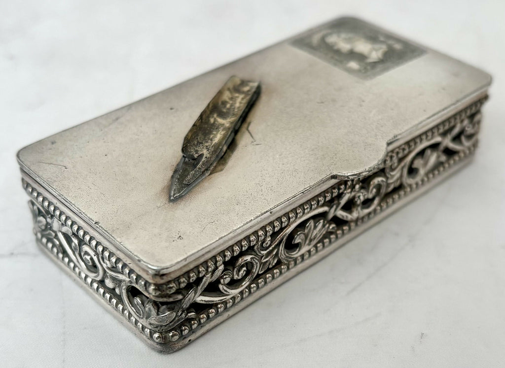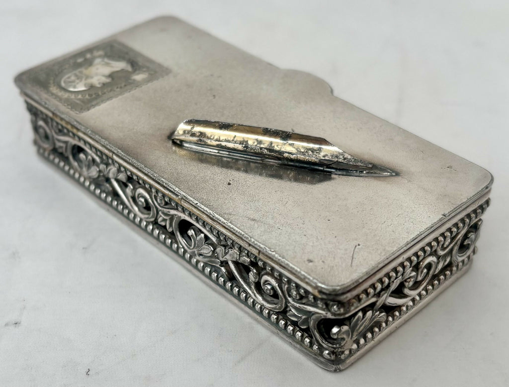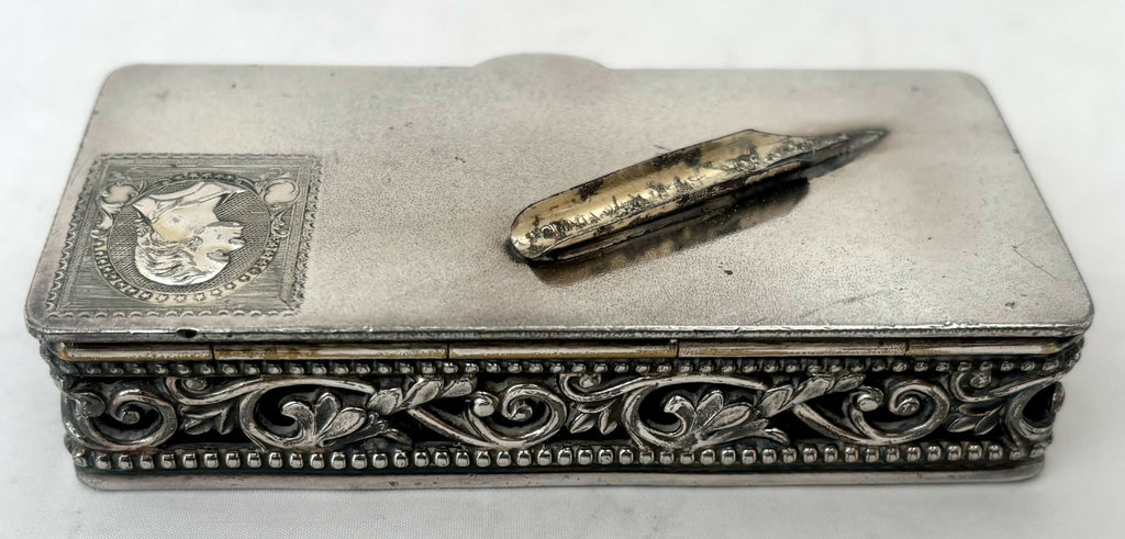 Early 20th Century Silver Plated Stamp & Nib box. Wilcox of Merdien, Connecticut.