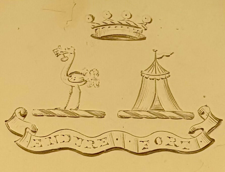 Marked to the inside of the cover for Thornhill of Bond Street, London, circa 1890 - 1910. The tent crest is for the Lindsay family and the ostrich crest is for the Crawford Family.
