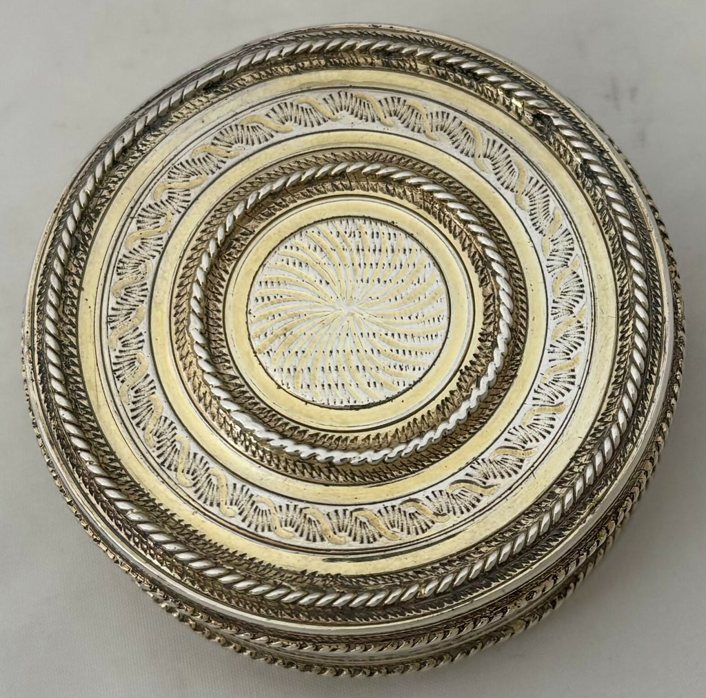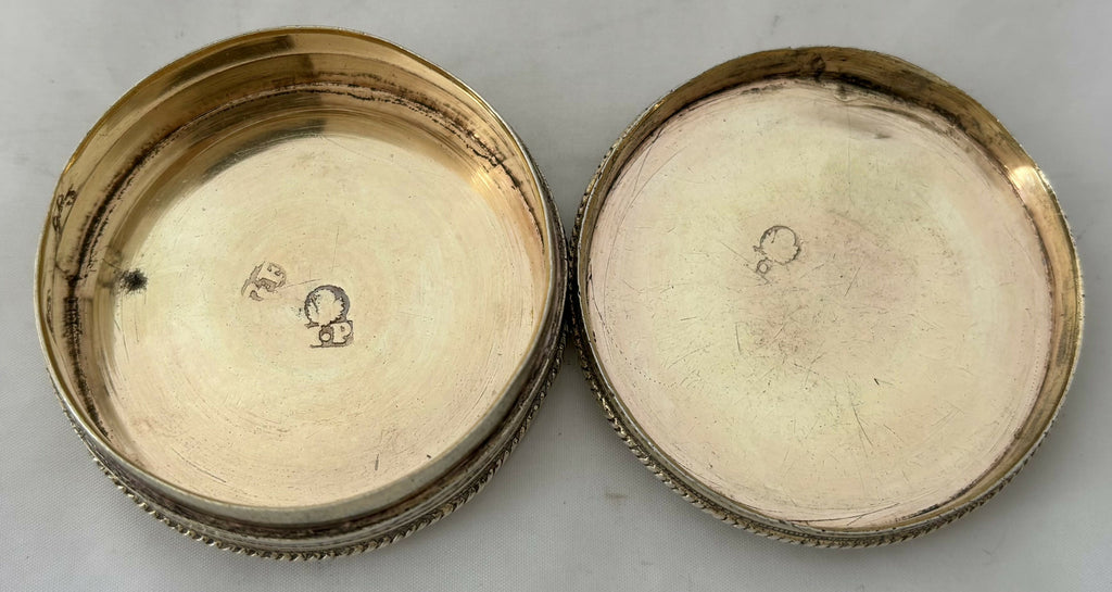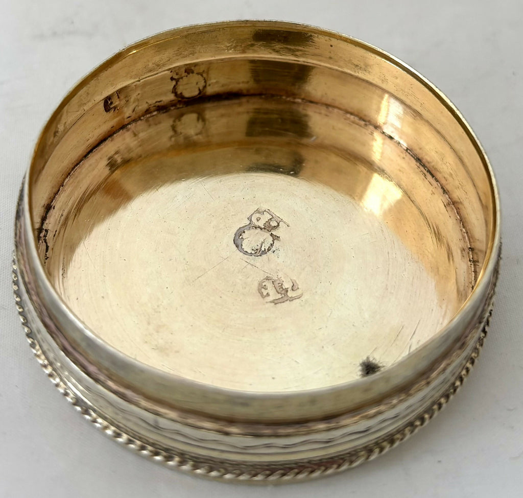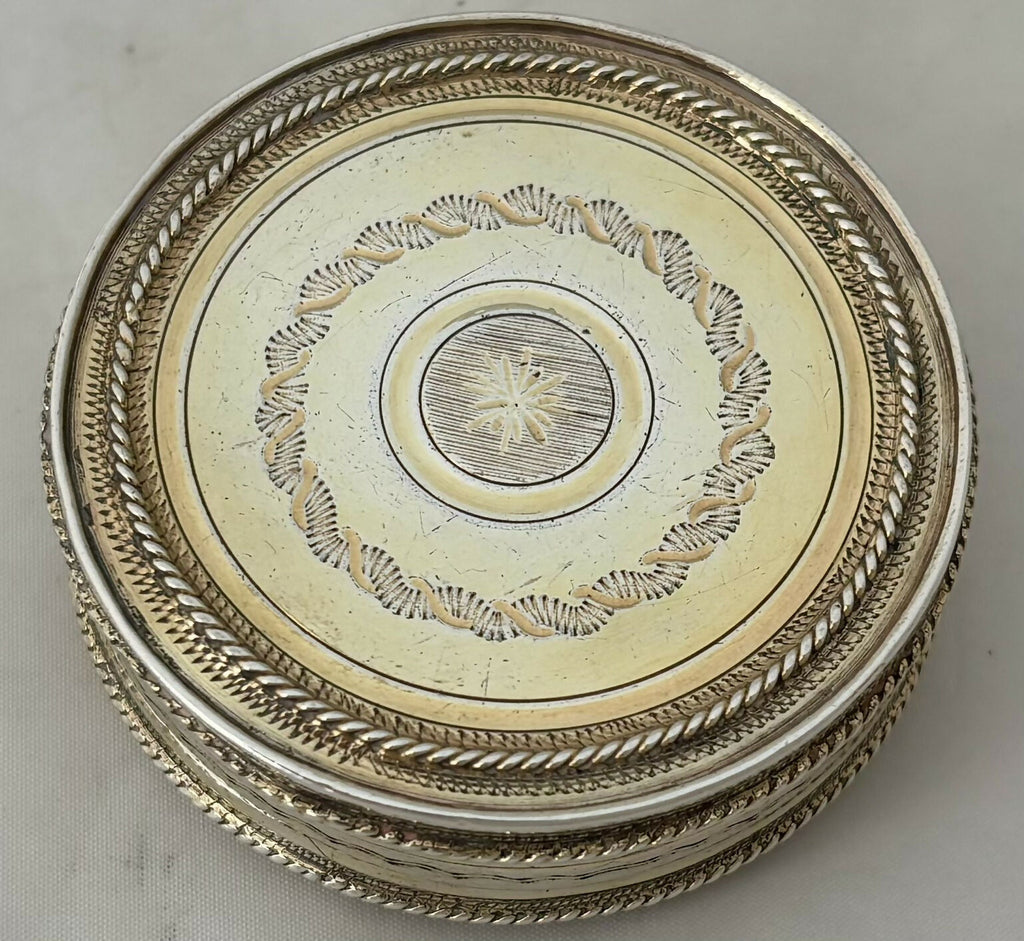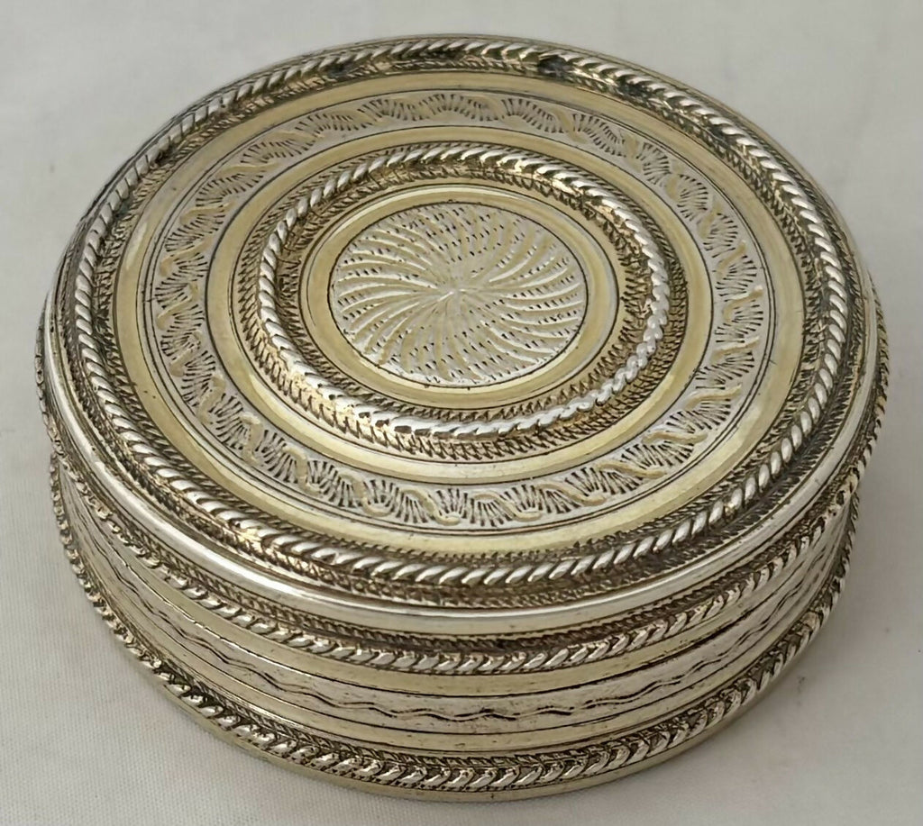 Venice, Circa 1790, Circular Snuff Box with Rope Twist Borders and Engine Turned Detail.